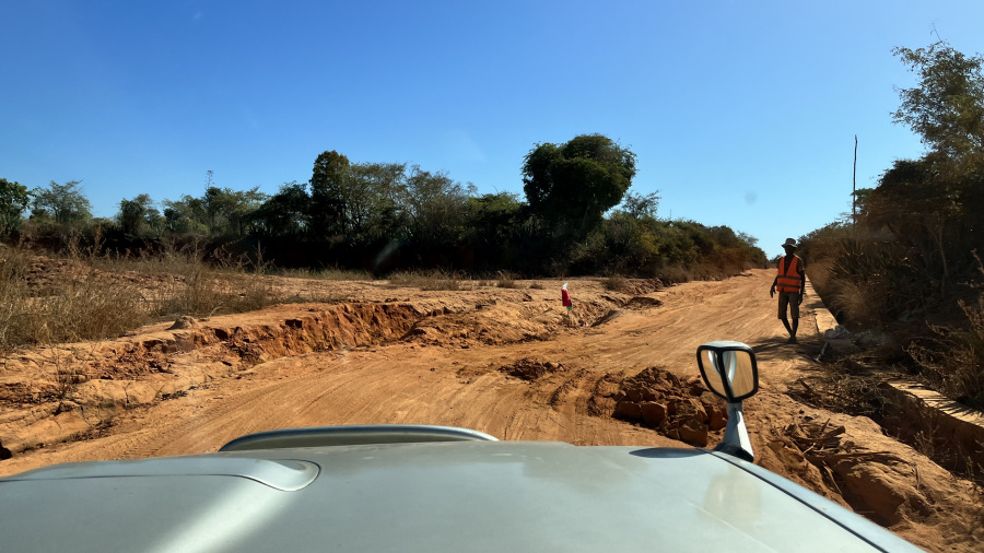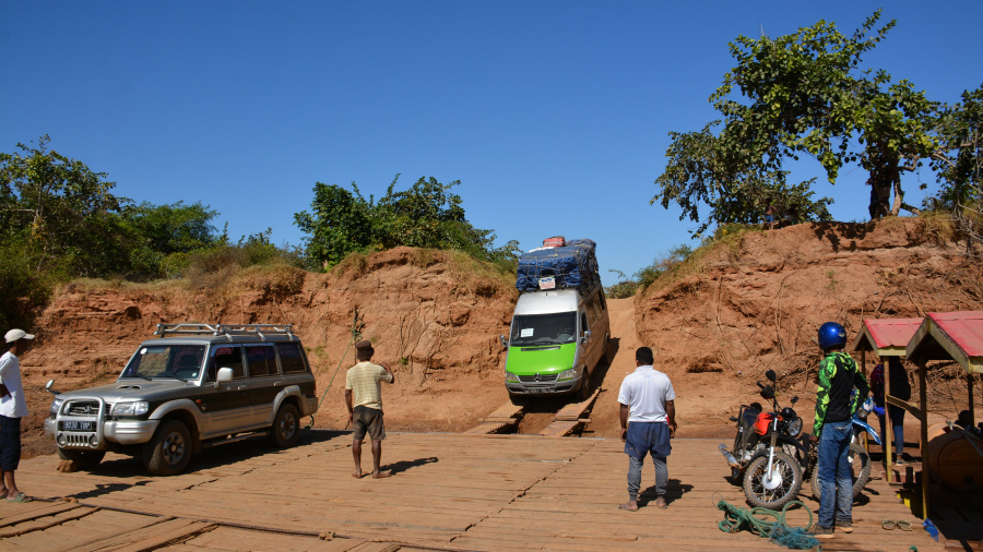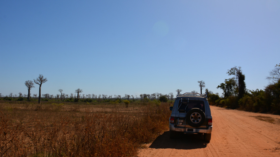 Čakala nas je razburljiva vožnja po makadamski odročni cesti. Ta del Madagaskarja je izredno suh in ljudje komaj preživijo v takšnem podnebju, zato je tudi izredno malo vasi in prebivalcev. Baobabi se bohotijo proti nebu. Mi smo premagovali kilometre po zaprašeni cesti, srečali pa nismo praktično nikogar. Naslednja vas je bila Belo Sur Tsiribihina, kjer je tudi ena izjemna restavracija. Seveda je namenjena le turistom in zelo bogatim posameznikom. Še pred tem smo prečkali lokalni pontonski trajekt. Restavracija Mad Zebu je vrhunska. Sredi ničesar boste jedli kosilo z “Michelinovo zvezdico”. Res neverjetno okusno in seveda za nas poceni.