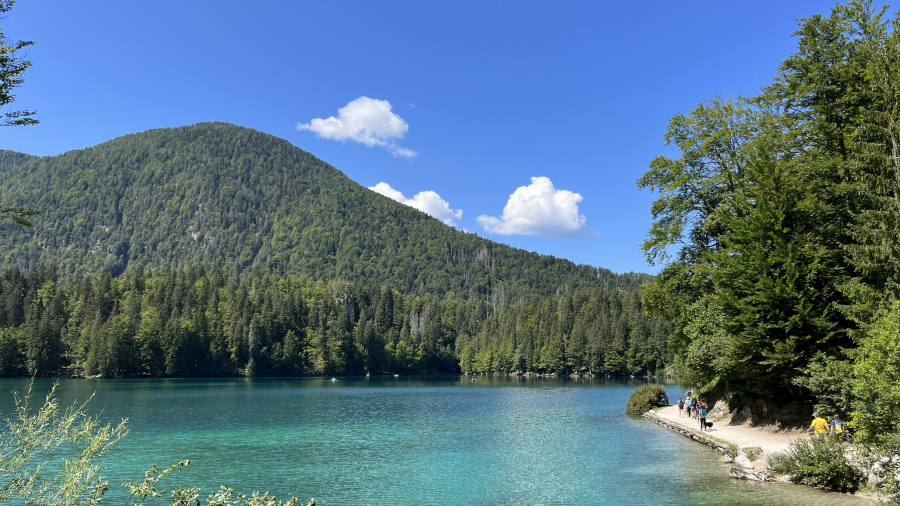V začetku junija sva prvič obiskala kočo Zacchi v Italiji in naju je popolnoma navdušila. Takrat sva se do nje povzpela peš od zgornjega Belopeškega jezera. Tokrat pa sva se odločila za kolesarjenje iz Mojstrane do koče Zacchi v Italiji. Avtomobil sva parkirala na urejenem parkirišču v Mojstrani ob glavni cesti, kjer je lokal Topolino. Ker sva bila zgodnja, je bilo parkirišče še popolnoma prazno in tudi Topolino še zaprt. V toplem poletnem jutru sva kolesarila po precej prazni lepo urejeni asfaltirani kolesarski stezi do Kranjske Gore. Vmes so naju spremljali čudoviti razgledi na Julijce. Iz Kranjske Gore sva se namenila proti Ratečam in naravnost do meje in v klanec do Belopeških jezer. Po lepi makadamski cesti naju je čakal samo še strm klanec do koče Zacchi. Uživala sva v razgledih na prelepe gore brez oblaka. Vrnila sva se po isti poti, se vmes ustavila pri Belopeških jezerih, katerih vodostaj je srhljiv. Zgornjega jezera praktično ni. Manjka več kot 5 metrov gladine. Spodnje jezero pa očitno še ima dovolj vode. Res grozljivi prizori, ki jih še nisva videla. Za kosilo sva se ustavila pri Kosobrinu. Res dobro kuhajo in imajo odlično postrežbo. Nato pa samo še nazaj do izhodišča. Skupaj se je nabralo zavidljivih 65 km in 850 višinskih metrov. Res odličen kolesarski dan in prečudovita kolesarka tura.