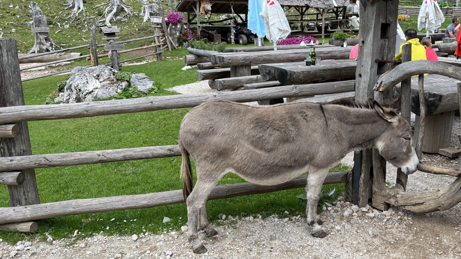 Planina Spodnja Dolga njiva (1.400 m) pod Košutnikovim turnom je zadnja leta precej oblegana. Tudi naju je vabila na obisk, a sva si jo nekako puščala za malce daljšo kolesarsko turo. Namreč planina je res lahko dostopna z avtomobilom, saj se lahko pripelješ praktično čisto do nje. Z zadnjega parkirišča je samo 20 minut hoje do planine. Midva sva začela najino kolesarsko turo iz Tržiča. Avto sva parkirala pri osnovni šoli in se peljala ob Dovžanovi soteski do Jelendola. Kmalu se je začela zelo lepa gozdna makadamska cesta, ki se ves čas lepo vzpenja praktično do planine. Tu in tam je kakšen strmejši del, a nič pretresljivega. V zadnjem delu se tudi odpre lep razgled na Karavanke in nazaj proti Tržiču. Koča na planini Spodnja Dolga njiva je zelo lepo urejena, imajo tudi svoje živali in pri njih lahko tudi prenočite. Domača kuhinja postreže z izjemnimi dobrotami. Midva sva se okrepčala z odličnim kislim mlekom in žganci z ocvirki, nato pa pokončala še vsak svoj mega domač Nežkin sirov štrukelj. Štrukelj dobi zlato medaljo! Čakal naju je samo še lep spust po isti poti nazaj do Tržiča. Prekrasno!