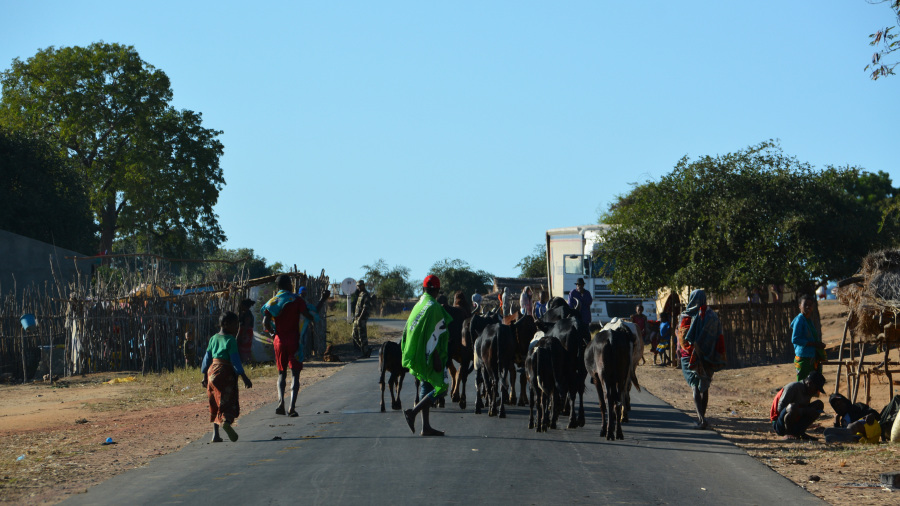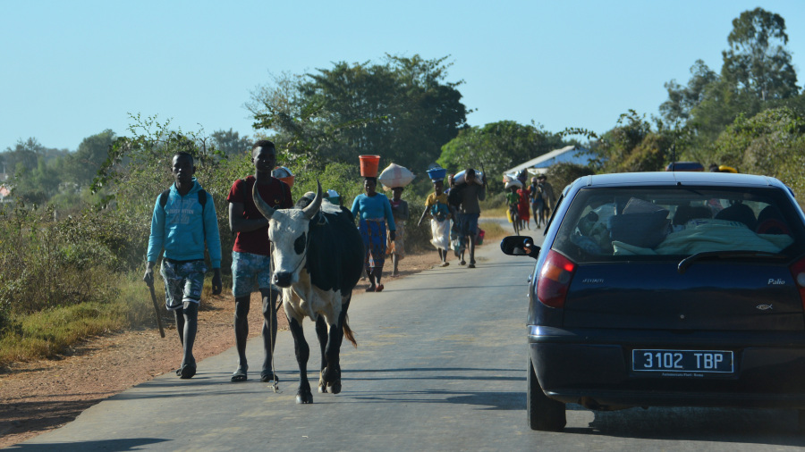 Slabih 500 kilometrov vožnje je bilo pred nami. Ker smo se pred dnevi že vozili po isti cesti, smo točno vedeli, kaj nas čaka in koliko časa potrebujemo. Cel dan. Od jutra do mraka z enim samim kratkim postankom v Miandrivazu. Vmes tako in tako ni nič, razen seveda vasi domačinov. Iz hotela v Morondovi smo se odpravili po zajtrku in se po lepi pokrajini vozili skozi vasi po popolnoma prazni cesti. Opazovala sva življenje domačinov, ki živijo tako kot mi še nedolgo nazaj. Njihovo življenje se vrti okoli podnebja. Kar jim nudita vreme in zemlja, s tistim se ukvarjajo za preživetje. V vsakem delu države je drugače, saj se podnebje precej spreminja. Pokrajina se dvigne tudi na 2000 metrov nadmorske višine in potem spet spusti. Domačini se večinoma preživljajo s pridelavo riža, govedorejo in sekanjem drv za oglje, kar je še dreves sploh ostalo. Madagaskar so že popolnoma posekali in ni več prav veliko ostalo od prvobitnih gozdnih površin. Zato jih pesti tudi velika erozija zemlje na veliko področjih. V večjih vaseh ob cestah so manjše tržnice, kamor domačini peš prihajajo iz svojih bolj oddaljenih vasi. Na tržnicah prodajajo, kar so pridelali, in kupijo, kar potrebujejo. V resnici živijo izjemno ekološko – organsko pridelana hrana in popolnoma brez nepotrebnih materialnih dobrin. Vse pridelajo z golimi rokami v krogu svoje družine od zore do mraka. Ko sva pred leti potovala po Ugandi, so se mi smilili. Danes se mi smili naš zahodni materialistični in kapitalistični svet. Kdo je bolj srečen?