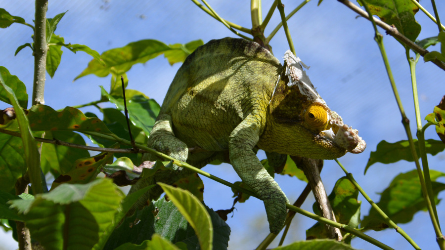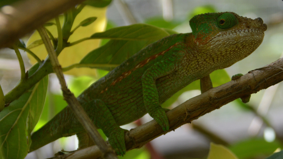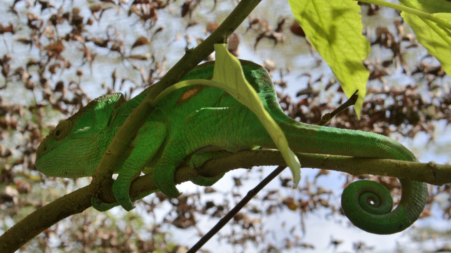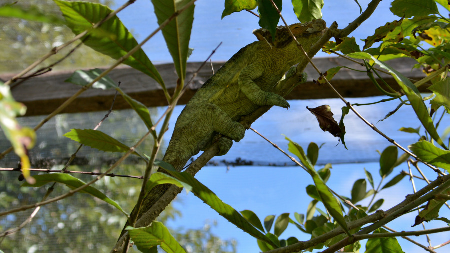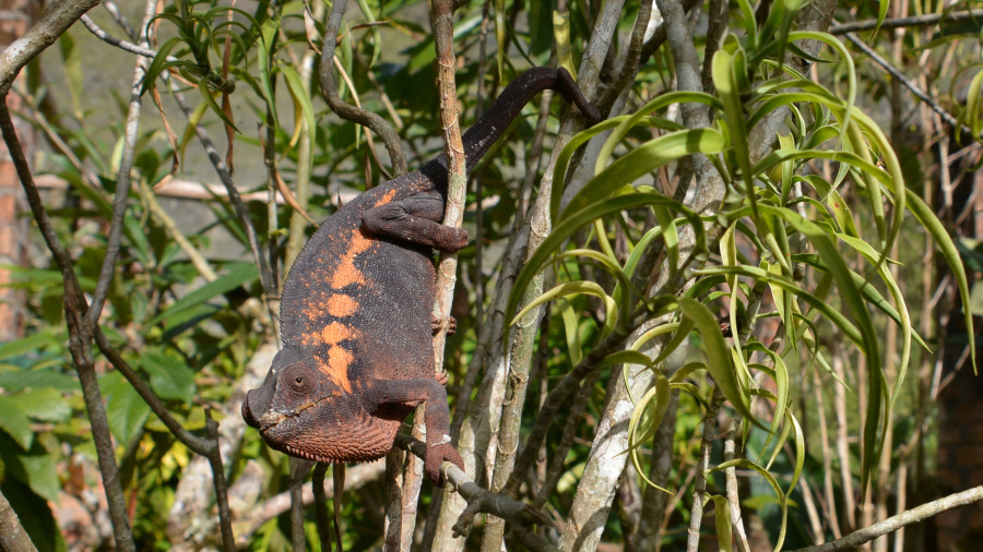 Na poti v Andasibe smo se ustavili v zasebnem rezervatu Peyreiras, kjer si lahko v velikih zamreženih rastlinjakih ogledate mnogo vrst res prekrasnih kameleonov. Midva seveda nisva navdušena nad obliko ogleda, a v naravnem okolju bi verjetno potrebovala več mesecev, da bi videla toliko različnih vrst kameleonov. Živali imajo dobre življenjske razmere in lepo skrbijo za njih.