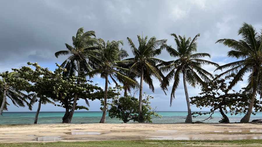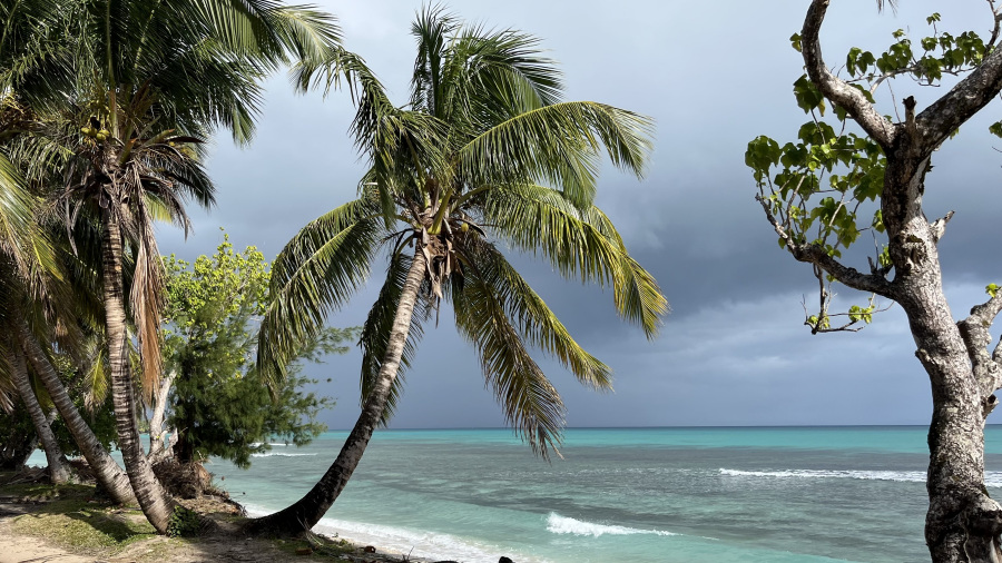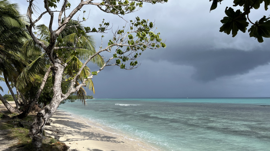 Celo noč je močno deževalo in tudi čez dan je bilo precej dežja. Vmes so seveda bile tudi “suhe in sončne” ure, a so se vseeno na nebu ves čas podili črni oblaki. Kljub temu sva naredila po plaži gor in dol tri zelo dolge sprehode, v čemer resnično najbolj uživava zadnja leta. Vmes seveda odlična kulinarika in posedanje ter strmenje v prekrasno pokrajino. Tudi tako je treba preživljati počitnice in nič se nisva pritoževala. V posebni sobi resorta so zakurili odprt kamin, kjer sva lahko na platnu spremljala kolesarske podvige in teniške dvoboje. Pozno popoldne sem si privoščila še enkrat neverjetno 4-ročno masažo celega telesa. Prav nič nama ni bilo dolgčas in z odličnim jastogom za večerjo sva zaključila dopustovanje na krasnem rajskem otoku.