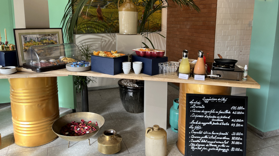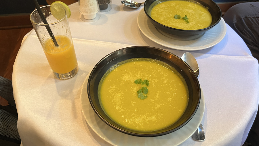 - kosilo v hotelu La Varangue (dve bučni juhi, orange juice, kava, čaj, coca cola) = 20 EUR