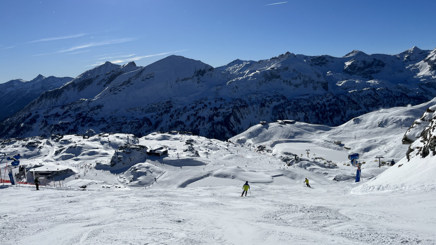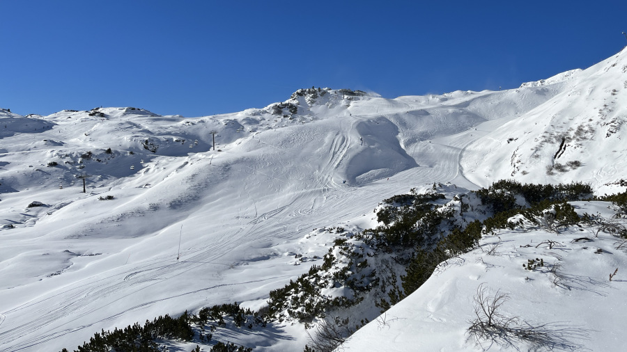 Po slabih treh letih končno pravi smučarski dan na avstrijskih strminah. Nazadnje sva smučala na Obertauernu 8. februarja 2020, potem pa se je začelo dolgo koronsko obdobje in za naju obdobje “smučarske suše”, saj nama enostavno “niso dovolili”. Midva sva se s tem sprijaznila, kupila turne smuči in uživala v naših hribih. Danes pa se je vse poklopilo. Novembra sva običajno smučala na ledeniku Mölltaler, na Obertaurnu pa še nikoli, ker ni bilo snega. Danes imajo že 30-60 cm naravnega snega in odprtih že 20 km prog od 100 km, kar je povsem dovolj za odlično enodnevno smuko. V Obertauern sva prispela že ob 8:30 in se čudila gneči. Vsa parkirišča so bila že polna. Domačini so se razveselili snežnih razmer in vsi planili na smuko v Obertauern, ker je edino smučišče, ki že obratuje. Ogromno je bilo tudi turnih smučarjev. Našla sva parkirišče, kupila 3-urni smučarski vozovnici in presneto uživala v vsakem zavoju po belih strminah. Proge so bile odlične, sonce naju je grelo, na nebu pa ni bilo niti najmanjšega oblaka. Uau, presrečna in zadovoljna ob tako lepi smučarski nedelji.