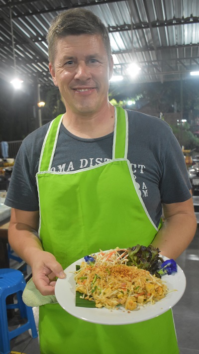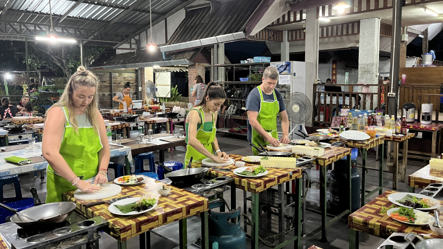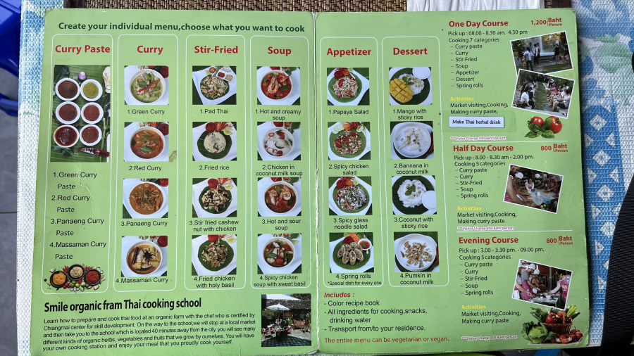 Po odličnem zajtrku sva se z avtobusom odpeljala iz Chiang Rai proti jugu v Chiang Mai. Chiang Mai sem jaz že obiskala ob prvem obisku, zato sem zelo dobro poznala mesto. Avtobusna postaja je na severnem delu, zato sva se do hotela odpeljala s tuk-tukom. Hotel sva imela izjemen in čisto v središču dogajanja. Že med načrtovanjem potovanja sva si želela na kuharski tečaj na Tajskem. To je kar “must” ob obisku Chiang Maia. Poldnevni tečaj sva si izbrala pri Smile Organic Farm Cooking School, ki so imeli najboljše ocene na Tripadvisorju. Bilo je fantastično. Na pravem podeželju smo si skuhali celo kosilo/večerjo v odličnem vzdušju. Priporočam.