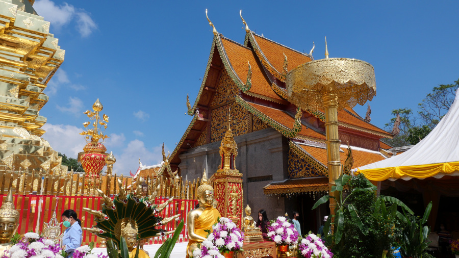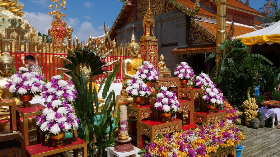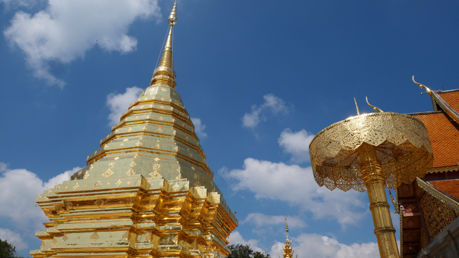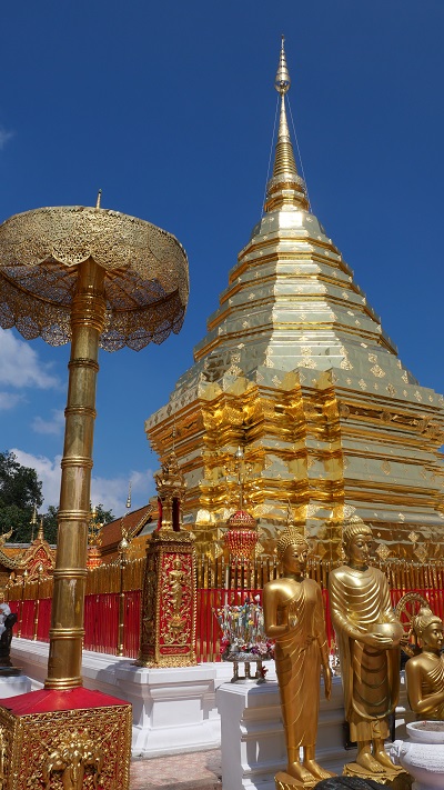 Če ste v Chiang Mai-u, si morate seveda ogledati ta budistični kompleks v hribovitem zahodnem delu. Po zaviti izjemno lepi asfaltirani cesti se s skuterjem pripeljete do vhoda in se po kar nekaj stopnicah odpravite do templja. Tempelj je krasen in ima tudi lepo razgledno ploščad. Prva stupa je bila tu zgrajena že leta 1383, v naslednjih stoletjih pa se je kompleks počasi dograjeval. Prva cesta do templja je bila zgrajena že leta 1935. Glavni obiskovalci templja so seveda domačini, ki pa se jim vedno pridruži še velika množica turistov. Tajski templji so izjemno lepi in vredni obiska.