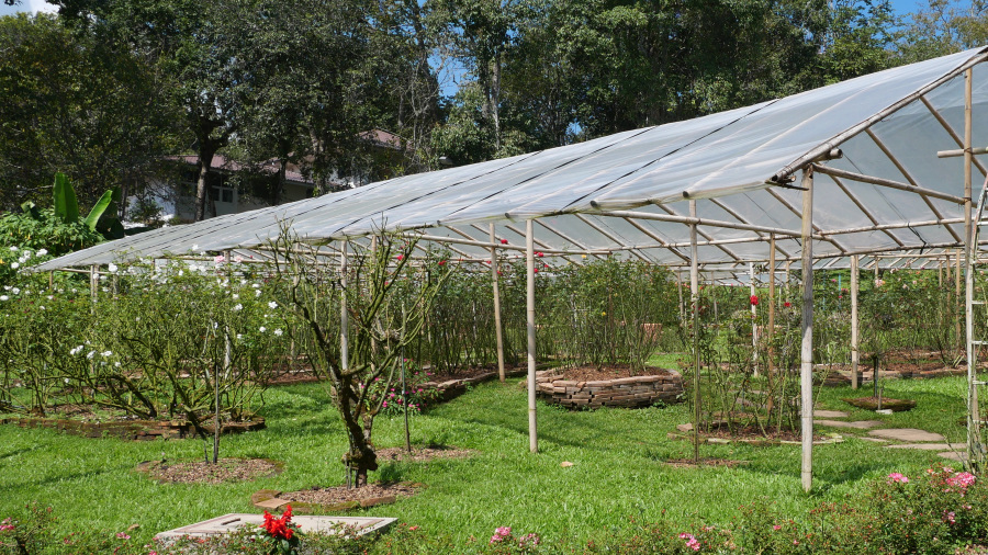 Po isti cesti sva se vrnila in se ustavila pri poletni kraljevi rezidenci, ki je bila tokrat odprta za obiskovalce. Odprta je samo takrat, kadar seveda ni tukaj tajskega kralja. Palača je skrbno varovana z vojsko, ki opazujejo vsak vaš korak. Bila sva primerno oblečena (vse pokrito), zato so naju spustili notri. Bila sva edina obiskovalca. Sprehajala sva se po začrtanih poteh med rastlinjaki in posajemi raznovrstnimi cvetočimi rastlinami. Žal za vrtnice ni bil pravi čas, ker so v večini že odcvetele, ampak posest je vseeno zelo lepa in vredna oogleda. Pravi zeleni raj za vročo Tajsko.