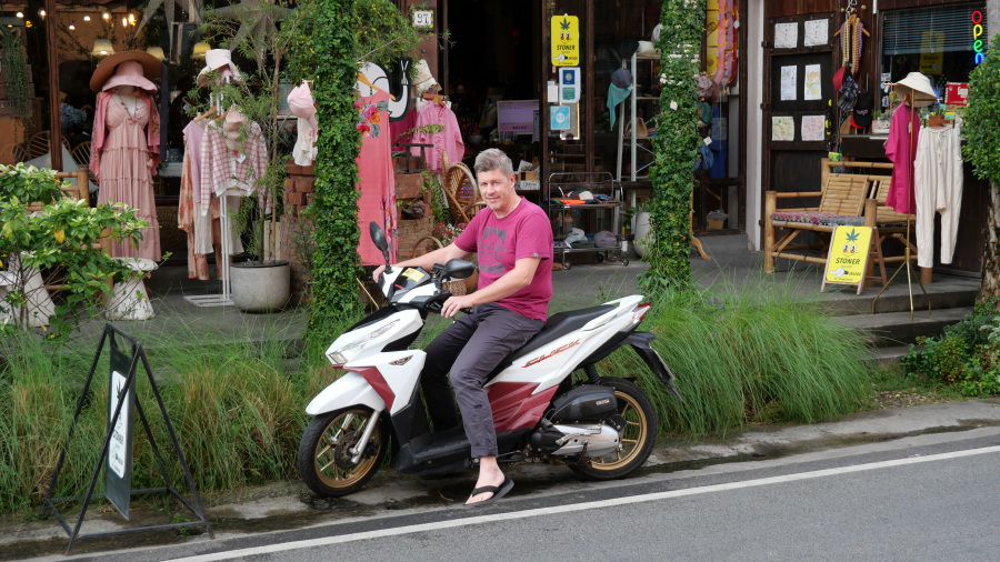 V Chiang Mai-u je najbolje rezervirati hotel brez zajtrka, saj je na ulici toliko lokalov in restavracij z izvrstno ponudbo, da ti je potem kar žal. Midva sva izbrala top lokal z odlično ponudbo. Matjaž pravi, da je bila kava za več kot čisto desetko in tudi oba zajtrka sta bila več kot odlična. Ni poceni, ampak enkrat se živi. V sosednji ulici sva najela skuter za 24 ur in se odpeljala proti zahodu po glavni ulici. Proti parku Doi Suthep vodi samo ena glavna cesta in točno tam so policaji, ki ustavijo seveda vse turiste na skuterjih. Zahtevajo mednarodno vozniško dovoljenje, ki ga seveda nihče nima. Sledi kazen 500 THB, ki jo poravnaš na policijski postaji v roku 3 dni. Pa sva dala za malico še policajem. Nič hudega.