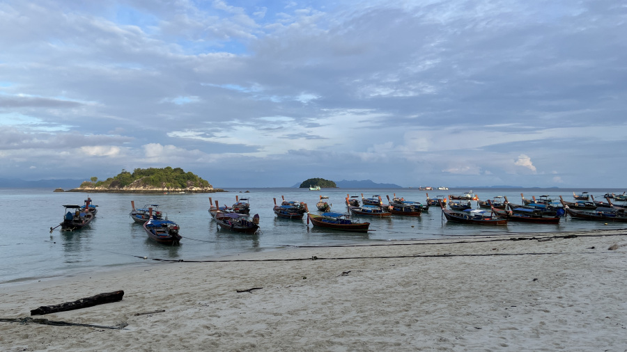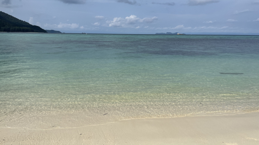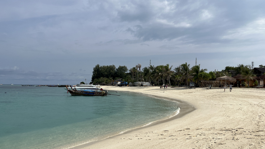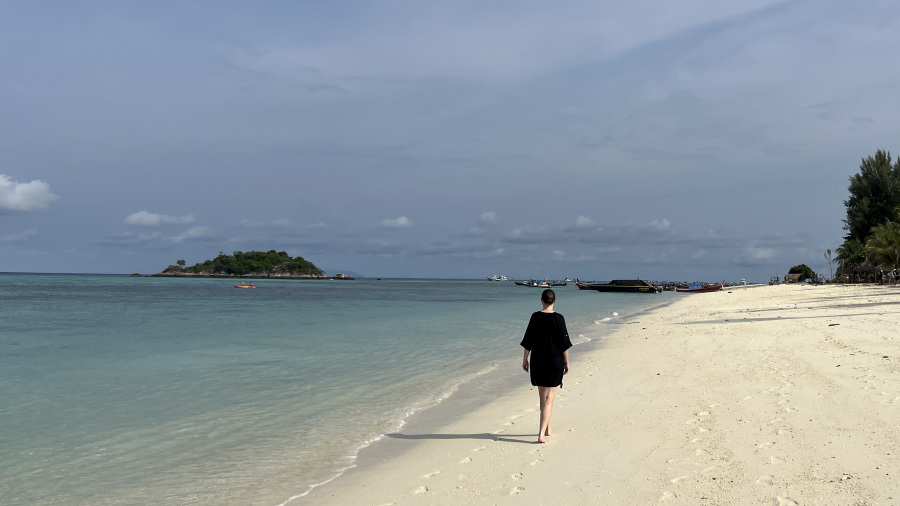 Hotel v Hat Yai blizu letališča je povsem osnoven. Potrebovala sva le spanje in zajtrk. Namreč ob 9h sva že imela prevoz na rajski otok Koh Lipe. Kombinirani prevoz ponudnika Satun Pakbara sem kupila vnaprej že doma po spletu na njihovi spletni strani https://www.spcthailand.com/. Vse je bilo super in zelo profesionalno. Z letališča smo se s kombijem odpeljali najprej do pristanišča Pak Bara. Tam smo se s hitrim čolnom odpeljali do otoka Koh Lipe, vmes pa smo naredili dva krajša postanka znotraj nacionalnega parka Tarutao. Koh Lipe je tudi del nacionalnega parka, zato potrebujete 3 dnevno dovolilnico, ki jo morate imeti ves čas pri sebi. Kupite jo v pristanišču Pak Bara. Bilo je malce oblačno vreme, a zato nič manj lepo in toplo. In seveda prelepooooo. Končno na mivki in s pogledom na turkizno morje.