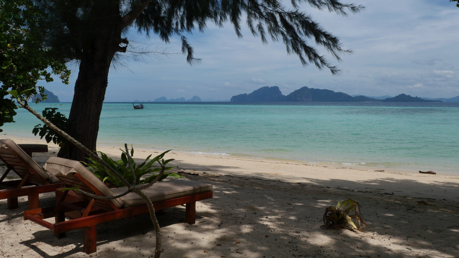 Na Koh Lanti sem tudi izbrala hotel na najlepši plaži. Hotel je dokaj lep, že tudi precej zdelan, malce so ga tudi še obnavljali pred sezono. Sobo sva imela čez cesto v hrib, ker sob na plaži nimajo. V zadnjem nadstropju sva imela ogromno sobo, krasno kopalnico in na balkonski terasi masažno kad. Zajtrk je bil zelo osnoven, ker ni bilo praktično nič turistov. Plaža je lepa, direktno na plaži ni ležalnikov, imajo pa dva lokala ter bazen. Precenjeno za najin okus.