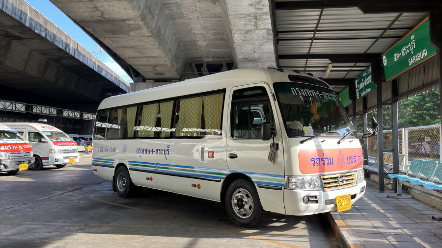 Imela sva cel dan časa, zato sva se odločila za samostojno izvedbo izleta v zgodovinsko mesto Ayutthaya, ki leži 80 km severno od Bangkoka. Celodnevni izlet si lahko organizirate tudi z lokalnimi agencijami kjerkoli v Bangkoku. Najprej sva zjutraj s težavo poiskala postajo za minivane. Seveda sva najprej šla na lepo novo postajo Mo Chit, a le ta ni bila prava. Prava je bila stara postaja pod cesto Minibus Station (Chatuchak). Sva se kar namučila, ker seveda okrog postaje nihče ne govori in ne razume angleško niti besede. Samo policajka je razumela Ayutthaya, nama povedala, da to ni to, ni pa znala povedati kam. Našla sva šele tretjega taksista, ki naju je odpeljal na pravo postajo. Od tam naprej je bilo vse lažje. Minivan vozi počasneje, saj se seveda ustavlja na postajah. Vi morate izstopiti na končni postaji, nič prej. Potem pa samo lepo proti zahodu in pridete direktno v središče Ayutthaye, kjer se začnejo najlepši templji. Takoj vas bo seveda želel naložiti tuk tuk, a midva sva si mesto ogledala peš.