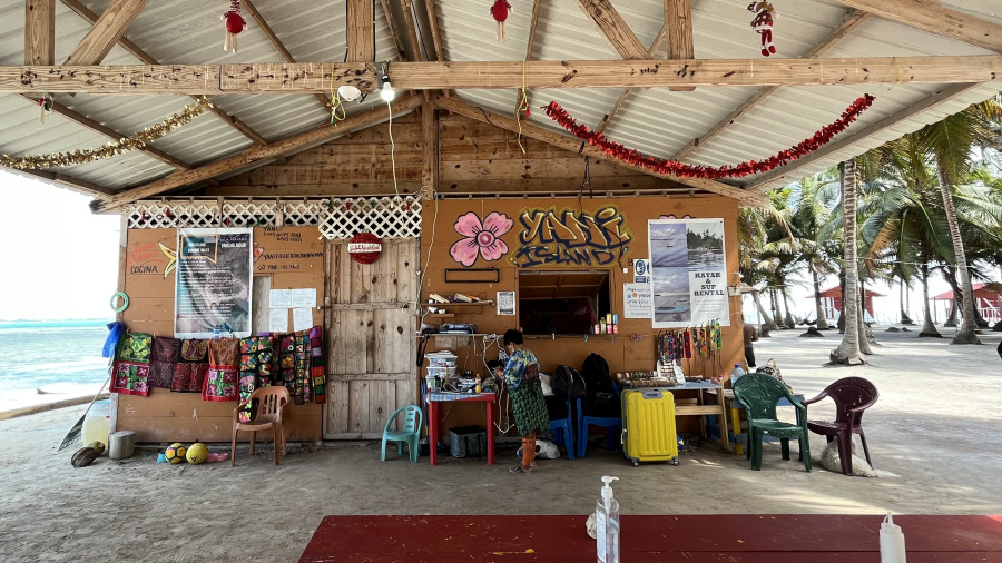 Otok Yanis je za turiste začel obratovati šele leta 2019, tako da je precej nov, tudi precej oddaljen in dražji od ostalih. Jaz sem si želela samote in ne 1000 dnevnih gostov, zato sem izbrala tega. Na otoku lahko bivate v zelo osnovnih nastanitvah. Midva sva izbrala samostojno hiško. Prvo noč sva dobila hiško na vodi, drugo noč na kopnem. Gre za hiško, ki ima samo stranice in streho iz lesenih desk ter majhno posteljo. V drugi sva imela celo stol in luč. Haha. Hiška ima toliko lukenj, da je čisto vseeno, če bi kar na tleh zunaj spal. Kopalnice so skupne in zelo preproste (trije wc-ji in en tuš s slano vodo). Na otoku je še jedilnica pod streho, kjer dobiš obroke in lahko kupiš pijačo. To je to. Na otoku živi družina Gun in nekaj delavcev za kuhanje naših obrokov. Na Yanisu živi še ena druga družina Gun, ki pa se ne ukvarja s turizmom in živi res pristno življenje. Otok je bil izjemno majhen (300 metrov premera), zelo lepo urejen in na otoku rastejo samo čudovite palme. Paziti se je potrebno kokosov, ki res padajo in zelo padajo. Nekajkrat le nekaj cm stran od glave kakšnega turista. Gune se s kokosi preživljajo in jih prodajajo v Kolumbijo, zato se jih turisti ne smemo niti dotakniti, če so na tleh. Družbo nam je delal tudi družinski pes, ki je bil več kot simpatičen in nagajiv. Malo sva se razgledala po otoku in je bil že čas kosila. Ob 12.30 je kosilo in to je to. Vsedeš se za mizo, dobiš obrok in ga poješ. To je to. Drugega ni. Če ne ješ, si pač lačen. Ampak obroki so izjemno okusni. Ne vem, kolikokrat v življenju sva jedla tako dobre ribe.