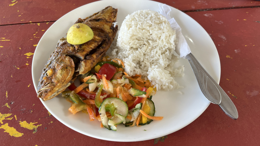 Po slabih treh urah smo se vrnili na naš otok, od koder so že odšli dnevni obiskovalci, ki jih ni bilo veliko. Na otoku nas je ostalo 12 in smo imeli mir, tišino in lepoto morja samo zase. Okrog pol šestih je sončni zahod in ob sedmih smo imeli večerjo. Elektrike je zelo malo oz. samo v jedilnici. Midva nikoli nimava lokalne SIM kartice, zato sva bila brez interneta. Sva pa imela zvezdnato nebo in veliko časa za dober spanec. Večerja je bila ponovno odlična, ob osmih sva že zaspala. A spanec je kratil grozen veter, ki ni odnehal tudi ponoči. V hiški sva bila kot sredi orkana nad morjem in sva morala spati pokrita tudi čez glavo z rjuho, sicer bi nama glavo odneslo. Hihi. Vse to za pičlih 300 USD.