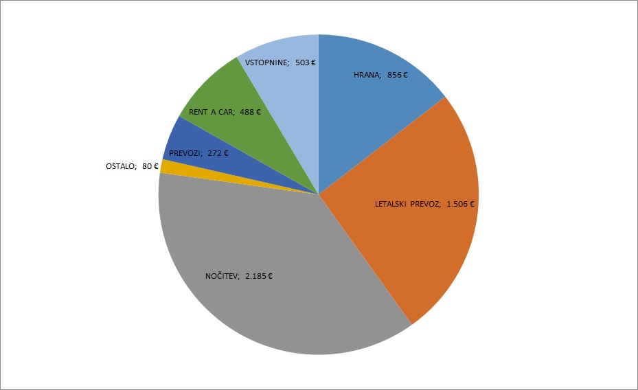 Na celotnem 19-dnevnem potovanju sva skupaj zapravila 5.891 EUR oziroma 2.945 EUR na osebo, od tega za 2 OSEBI: