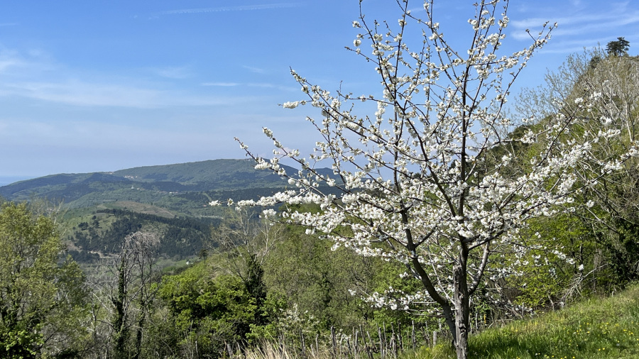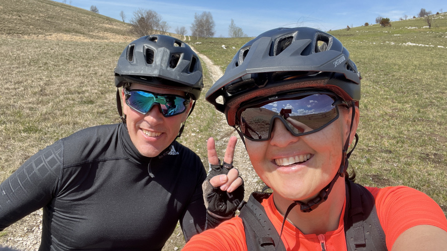 Končno se je malce ogrelo, da sva lahko naredila prvi letošnji kolesarski izlet izven domačega kraja. Tokrat sva se odpravila na nama nepoznani Kraški rob. Avto sva parkirala ob cesti v Bezovici, nato pa strmi klančini mimo manjših kraških vasi iz 13. stoletja na Kraški rob. Vozila sva se čisto sama v prelepi spomladanski prebujajoči se naravi. Živo zelene barve in cvetoče rastline so nama lepšale trenutke na kolesu. Po Kraškem robu sva lahko občudovala Slavnik z leve in Koper z desne. Peljela sva se pod Kojnikom, vmes srečala avtohtona istrska goveda (boškarine), čisto svež medvedov kakec in dve res dolgi kači. Uf, je bilo kar pestro. Počitek z jabolkom sva si privoščila na najlepši razgledni točki, nato pa se pod Goličem pripeljala do naravnega kamnitega previsa “Pod Steno”. Sledil je samo še prekrasen spust do lepe vasice Zazid in naprej do izhodišča. Prekrasna gorsko-kolesarska tura, a seveda le za izkušene gorske kolesarje.