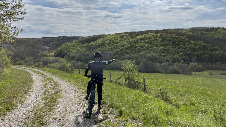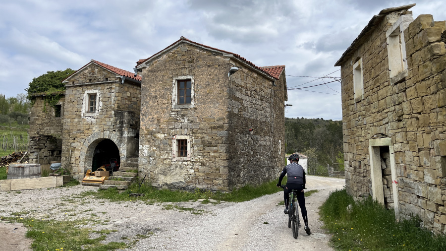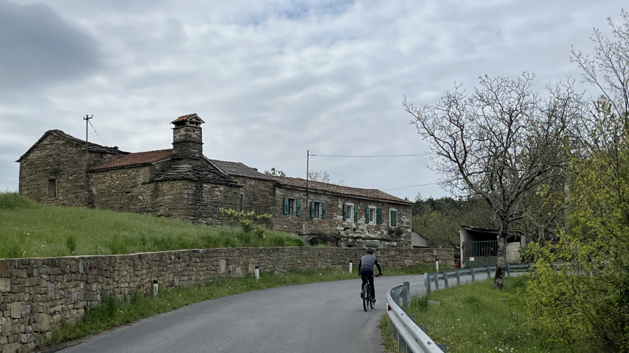 Na prazničen dan konec aprila sva si izbrala novo kolesarsko turo po naši Istri. Zadnje čase imava občutek, da sva kar naprej v istih krajih. Pa še res je. Pomlad je super izbira, kasneje pa je vsaj nama prevroče in takrat se raje odpraviva višje v hribe na Gorenjsko. Tokrat sva na res zgledni spletni strani lokalne turistične organizacije izbrala 35 km dolgo gorsko kolesarsko turo K7 – Po poti tartufov in špargljev. Lani sva bila tukaj na izletu in sicer sva odkrivala male skrivnosti Slovenske Istre peš, tokrat malo drugače in s kolesom. Parkirala sva v Gračišču, nato pa najprej po lepi makadamski cesti do Belvedurja, kjer sva si kasneje v gostilni privoščila že poznano skledo domačih fužev s tartufi. Kasneje sva zapeljala na makadam, ki je bil sprva precej simpatičen, potem pa sva gazila po blatu in kamenju do Abitantov. Abitanti je najjužnejša vas Slovenije. Sledil je res naporen in zelo težek spust skozi gozd do Sočerge. Uf, tukaj sva se pa res namučila. Moči smo združili še z enim kolesarjem in se k sreči vsi trije brez razbitih zob pripeljali do Sočerge. To pa je bil rodeo. Za konec še strm klanec do cerkve sv. Kvirika nad Sočergo, kjer je tudi izhodišče za znamenita Ušesa Istre. Od tam pa samo še krasen spust nazaj do izhodišča po naravnost čudoviti istrski pokrajini. Čudovita tura, a za zelo izkušene gorske kolesarje in ljubitelje narave, kjer res ne srečaš cel dan žive duše.