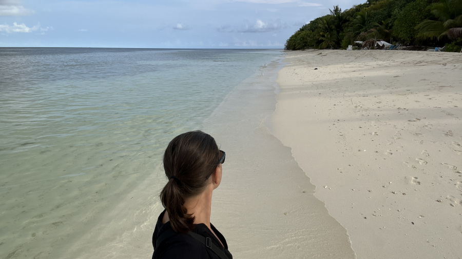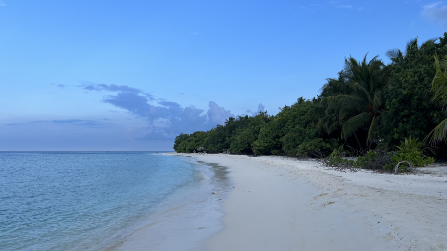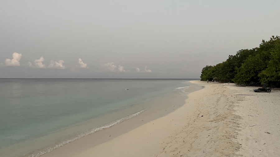 Sem ena tistih oseb, ki tudi na morskih počitnicah zgodaj vstajajo. Moja budilka je vedno nastavljena ob šesti uri in takoj se odpravim na sprehod po plaži. Na Ukulhasu mi je to najbolj všeč. Dolga in lepa plaža z nežno mivko, po kateri narediš v eno smer več kot kilometer dolg sprehod. Zjutraj v čisti tišini, spokojnosti in ob prvih sončnih žarkih. Pozno popoldne ob zadnjih nežnih sončnih žarkih, ki lepo božajo telo. Ukulhas ima za maldivske razmere idealno plažo za sprehode, tako da sem to dodobra izkoristila. Vsak dan zjutraj in zvečer dvakrat po plaži gor in dol, tako da sem nabrala vsak dan po plaži vsaj 5 km. Neprecenljivo!