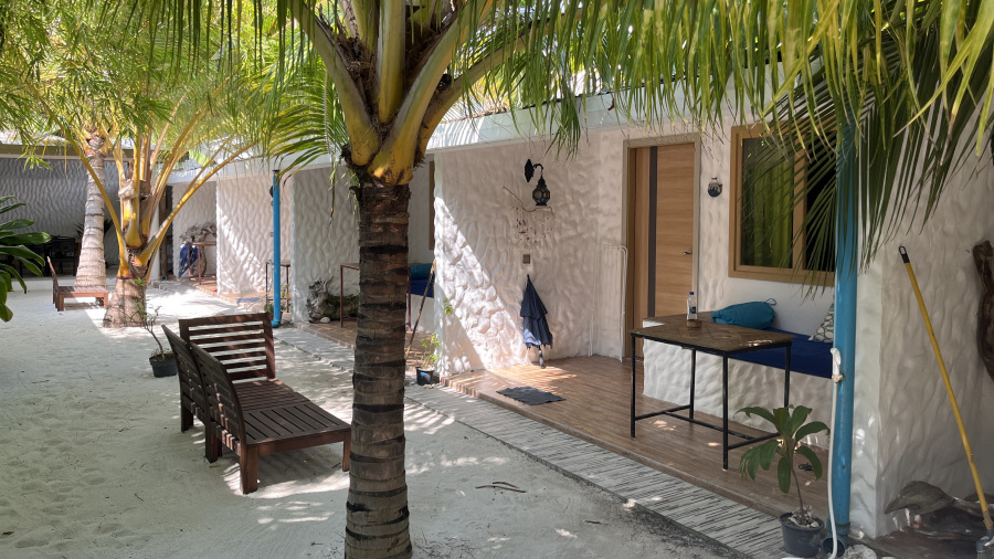 Druga moja lokacija je bil otok Ukulhas, na katerem sva že bila leta 2021 in tudi takrat sva spala v Trip Villi. Ker mi je že takrat bila izjemno všeč, sem se tudi tokrat odločila za to nastanitev. Ampak sem bila kar malce razočarana. Lokacija je še vedno dobra, a ponoči mi domačini niso dali miru. Poleg nastanitve se je odprl lokal, kjer pa imajo domačini celo noč zelo glasno zabavo. Lokacijo sem po treh dneh zamenjala in kljub temu, da sem že plačala še dve nočitvi, mi je lastnik vrnil denar. Neverjetno! Sicer pa je nastanitev lepa, precej že sicer tudi dotrajana, zajtrk je okusen. Ampak žal to ni več to.