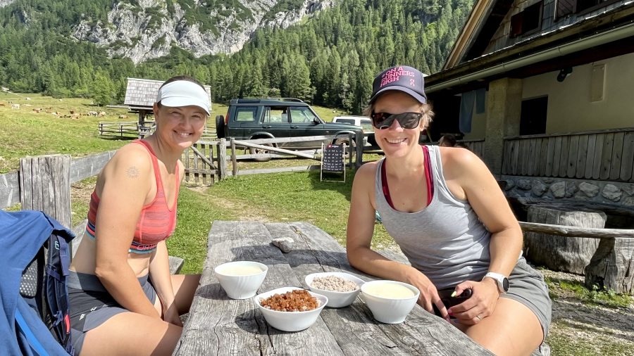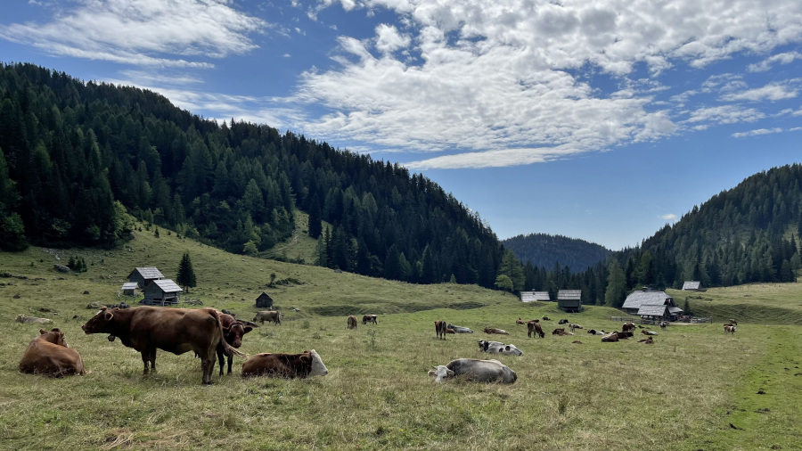 Nazaj smo se vrnili po krožni poti čez Kačji rob, ki se priključi na Srenjski preval in do planine Konjščice na več kot zasluženo domače kosilo. Celotno pot smo lahko občudovali planinske rožice in presenetljivo zelo veliko prekrasnih ter zelo posebnih planik. Planina Konjščica je letos polna krav in telet, tako da je prav lepo videti, kako planšarija živi. Izredno dobro kosilo, nato pa še nazaj po cesti do izhodišča. Nazaj do avtomobila je bilo res vroče, tako da smo bili veseli, da smo že ob 12h bili nazaj na izhodišču. Popoldne smo skupaj preživeli na Blejskem jezeru ob kopanju in seveda odlični kremšniti pri Šmonu.