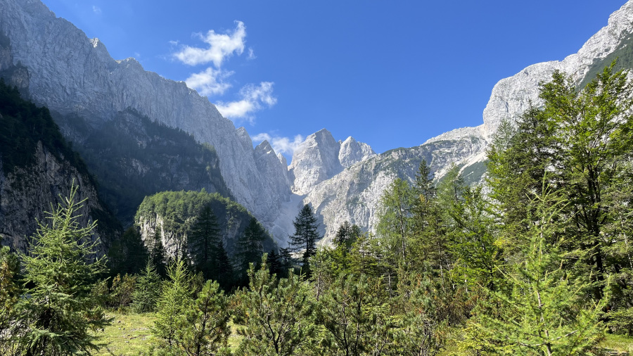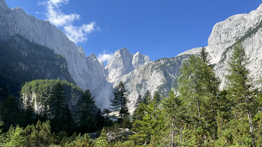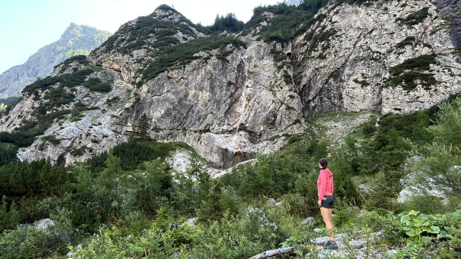 Pogosto se sprehodiva iz Planice po dolini Tamarja do planinskega doma. Tokrat sva bila precej zgodnja in sva prvič malce podaljšala najin sprehod in sicer do manj poznanega slapa Črne vode. Pot nadaljujete po označeni poti od planinskega doma v Tamarju kar naprej po dolini. Čez kakšnih 20 minut lahke hoje prispete do stene, po kateri teče slap Črne vode, ki je visok 70 metrov. Ker sva bila tam sredi avgusta, je bilo vode bolj malo, a vseeno gre za prečudovit sprehod po neokrnjeni naravi. Razgled nazaj na dolino Tamarja je prekrasen, hkrati pa se vam še bolj odpre pogled na Jalovec in Ponce. Od tu lahko nadaljujete tudi na vsem poznano Slemenovo špico, na katero se običajno povzpemo z Vršiča. Ko sva se midva že vračala do izhodišča v Planici, je šele začela prihajati večja množica obiskovalcev v Tamar. Zjutraj pa sva hodila praktično povsem sama celo pot.