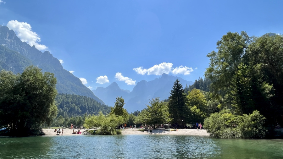 Ker še nisva imela dovolj sprehoda po naravi, sva se ustavila še v Kranjski gori najprej na odličnem kosilu v brunarici Kosobrin. Nato sva se sprehodila do jezera Jasna, kjer sva samo namočila noge v precej mrzlo jezero. Jezero Jasna ima tudi poleti le 12 stopinj, kar je le za izjemno pogumne kopalce. Sama se še ne prištevam med le-te. Je bilo blizu, ampak še nisem “dozorela” za takšne podvige. Sem se pa kopala letos v Bohinjskem jezeru, ko je imel le 16 stopinj, pa ni bilo tako zelo hudo. Krasen izlet!