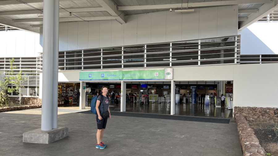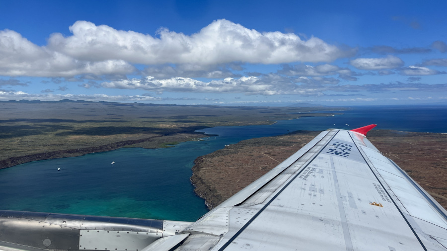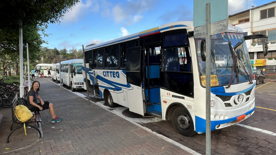 V pristanišču Santa Cruz ob 7h zjutraj ujameva redno linijo avtobusa, ki pelje na sever otoka do pristanišča. Tam z večjo ladjo prečkamo ožino do otoka Baltra. Nato se vkrcamo v avtobus, ki pelje direktno in samo do letališča Baltra, od koder sva poletela v Guayaquil na jugu Ekvadorja. Let traja 2 uri, potrebno pa je še dodati 1 uro časovne razlike. Tako sva ob 13h pristala v Guayaquilu na mednarodnem letališču.