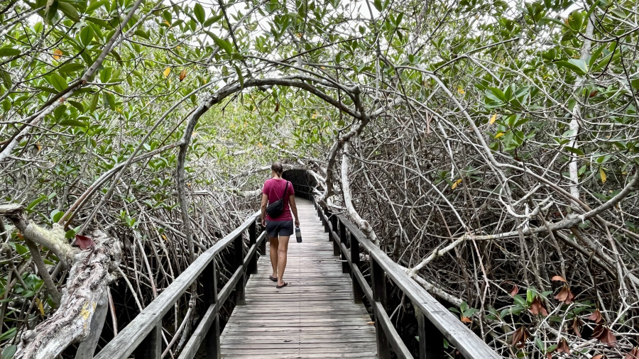 Po kosilu sva se sprehodila še na drugo stran mesta do pristanišča. Tam sva se po urejeni poti sprehodila med res lepimi mangrovami in urejeno je kopališče za snorklanje. Od tam so tudi izleti na snorklanje do bližnjih Tintoreras. Midva sva samo opazovala živali in se počasi vrnila do mesta.