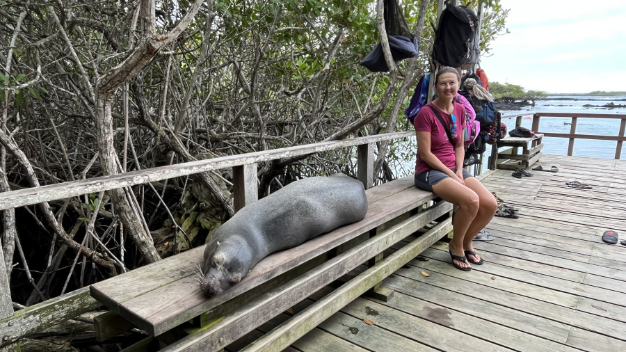 Na otočju Galapagos sva končala z organiziranimi izleti in si za konec privoščila še malce pravih počitnic na najlepši plaži na otoku Isabela. Odlično sem časovno načrtovala počitnice na otočju in sledilo je še samo dva dni čiste uživancije. Spanec, odličen zajtrk v hotelu, nato pa dolg sprehod v popolni samoti po prekrasni dolgi peščeni plaži Puerto Villamil. Vmes sva seveda opazovala premnoge živali, ki se čisto nič ne bojijo in jim lahko res zelo od blizu opazuješ. Imela sva pravo predstavo živalskega sveta pred očmi. Šla sva čisto do konca do plaže “El Tunel”, kjer je doma na stotine iguan z mladički. Imela sva prekrasno vreme. Sledilo je kosilo, nato pa še sprehod popolnoma na drugo stran mesta do “Pearl Shell”, kjer so se nekateri tudi snorklali. Na otoku je zelo dobro tudi snorklanje na lokaciji Tintoreras, a se midva za to možnost nisva odločila. Navdušena nad otokom in živalskim svetom pred očmi.