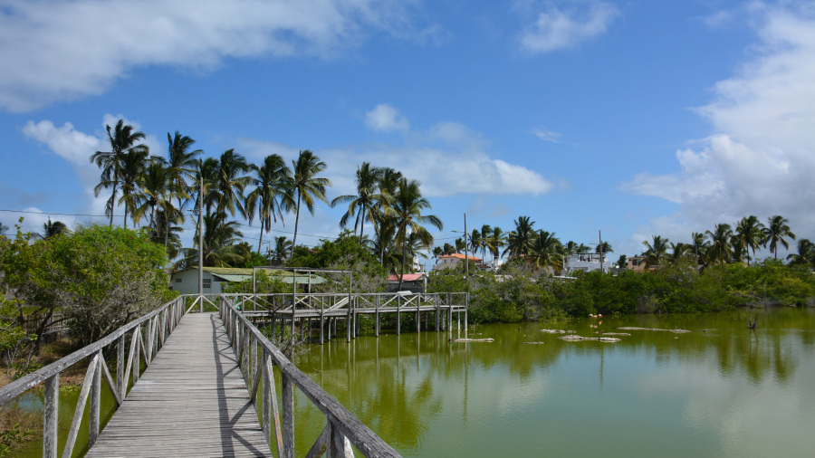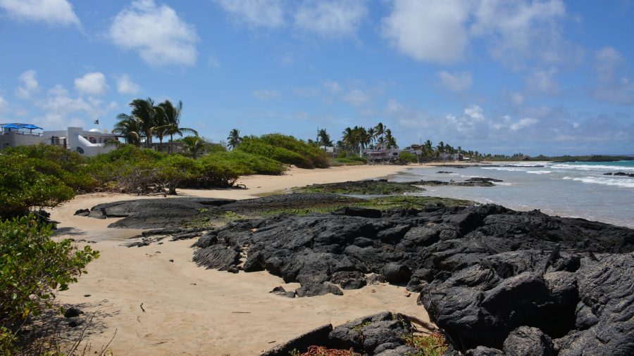 Mesto Puerto Villamil ni tako majhno, veliko pa tudi ne. Nekaj hiš, mivkaste ceste, zelo malo prometa in avtomobilov, precej restavracij in nekaj trgovinic. Zelo lepo je urejen “Malecon”, torej riva, kamor so posadili tudi lepe palme. Nama je bilo mestece prav všeč. Moraš pa na vsakem koraku paziti na iguane, ki zelo pogosto prečkajo glavne ceste.