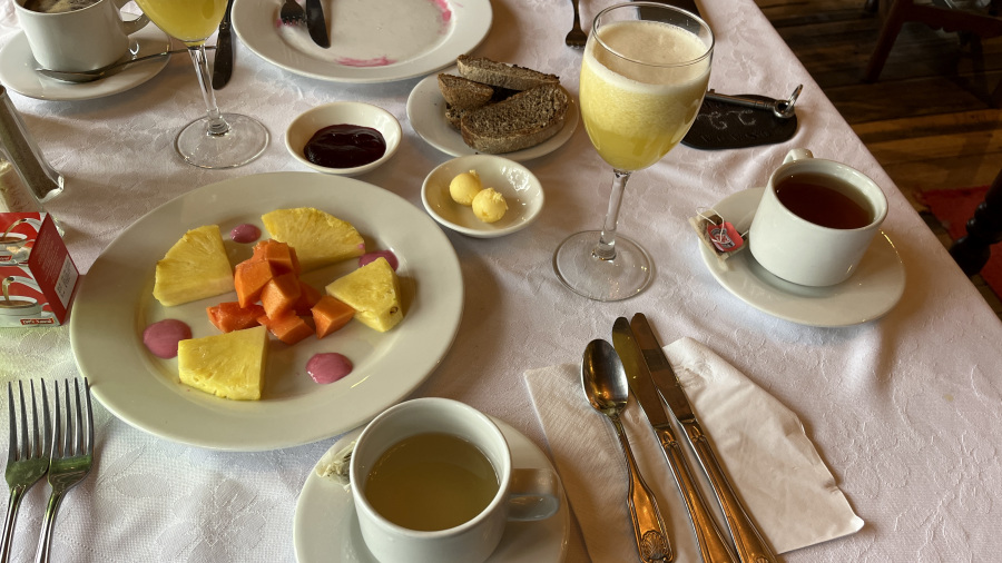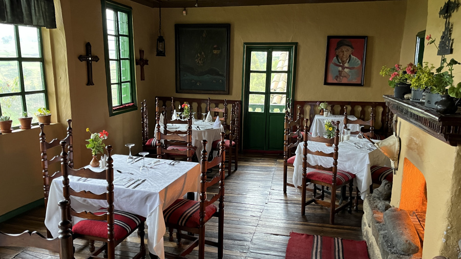 V ogromni sobi najine prelepe haciende sva imela za gretje samo en mini kalorifer na elektriko. A sredi noči je tudi elektrike zmanjkalo v celi vasi in gretja nisva več imela. Zjutraj je bilo tako mrzlo v sobi, da se je videla sapa. Uf, nekaj počepov, malo skakanja in brž v topla oblačila. Pri zajtrku smo zakurili kamin in svet je bil takoj lepši. V miru sva uživala ob dobrotah na mizi. Na dvorišču pa naju je pozdravila tudi udomačena lama.