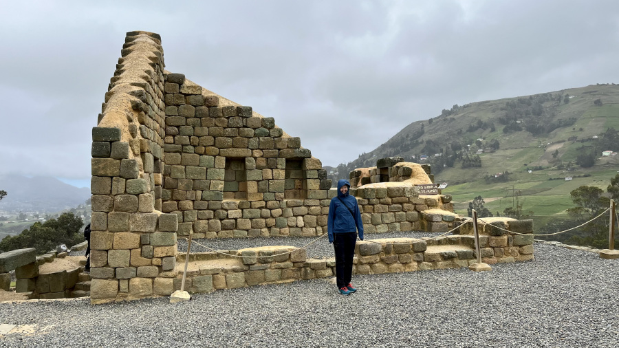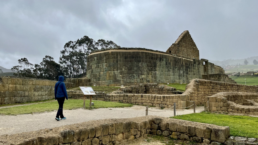 Pet minut hoje od prenočišča pa sva imela ogled ruševin starodavnega predinkovskega in potem tudi inkovskega mesta z imenom Ingapirca. Najprej sva si ogledala manjši muzej, nato pa smo imeli ob 10h organiziran ogled ostankov ruševin, ki so jih zelo lepo uredili za ogled. Gre za največje znane inkovske ruševine v Ekvadorju. Najpomembnejša stavba je Tempelj sonca, zgradba elipsaste oblike, ki je zgrajena okoli velike skale.