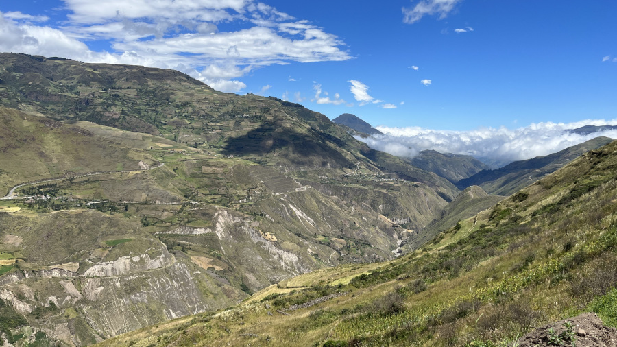 Po ogledu mesta sva se odpeljala proti severu. Kar nekaj kilometrov sva imela v načrtu, a hkrati se nama ni precej mudilo. Lahko sva si vzela tudi čas za počasnejšo vožnjo in postanke. Cesta je bila izjemno vijugasta in hribovita. Vozila sva se do 4.000 metrov nad morjem in spet nižje, pa spet gor in spet dol. To je Ekvador. Razgledi pa fantastični. Žal so v Ekvadorju posekali skoraj vse prvobitne gozdove, ker potrebujejo njive za gojenje zelenjave za preživetje. A to se jim zelo maščuje, saj imajo zelo strma pobočja, veliko padavin in posledično ogromno število plazov. Tudi midva sva imela na cesti več deset plazov, eden pa je pred kratkim bil res uničujoč v mestu Alausi, kjer je bilo kar precejšnje število smrtnih žrtev.