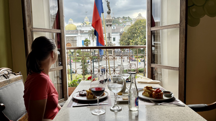 Zadnji dan z avtomobilom na poti. Iz Otavala sva se po zajtrku odpravila nazaj proti glavnemu mestu Ekvadorja. Še prej pa sva se ustavila v zagotovo najboljšem interpretacijskem centru daleč naokoli – La Mitad del Mundo Reloj Solar. Turisti običajno obiščejo to znamenitost Ekvadorja na severu mesta Quito, midva pa sva imela možnost obiskati tega, ki je res izjemno poučen. Čez Ekvador namreč teče zemeljski vzporednik ekvator, od tod izvira tudi samo ime države. Navdušena sva se odpeljala naprej do letališča, kjer sva vrnila najin najeti avto. S taksijem sva se odpeljala v center prestolnice v najino lepo nastanitev. Ker sva jo imela povsem v centru Quita, sva se lahko le sprehodila do glavnega trga na izjemno kosilo.