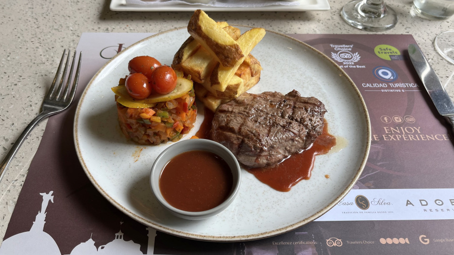 - kosilo (steak, voda, vino) = 54,50 USD (50 EUR)