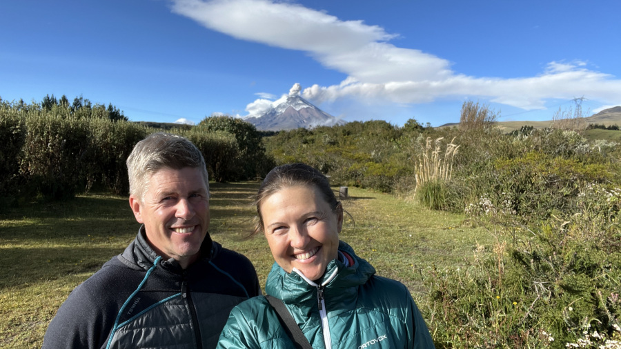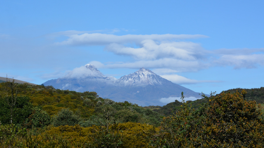 Zagotovo sva zadela na loteriji z izbiro tega prekrasnega lodga za prenočevanje v nacionalnem parku Cotopaxi. Ponoči naju je grel kamin, zjutraj pa sva se zbudila v prekrasno jutro brez oblaka z neverjetnimi pogledi na Cotopaxi in okoliške hribe. Res noro. Cotopaxi je bil precej živahen in je veliko bolj kot včeraj bruhal visoko v zrak pepel. Midva pa sva ga na toplem opazovala ob izjemnem zajtrku. S težavo sva se od tukaj poslovila, ker je bilo res za čisto desetko. A dolg dan je bil pred nama z veliko počasne vožnje na sever.