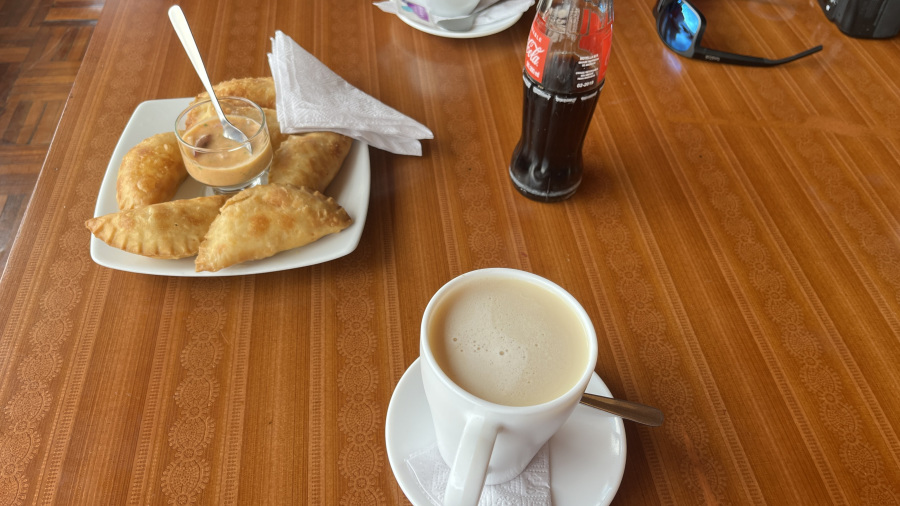 - kava, Coca Cola, 2x empanade = 13 USD (11,9 EUR)