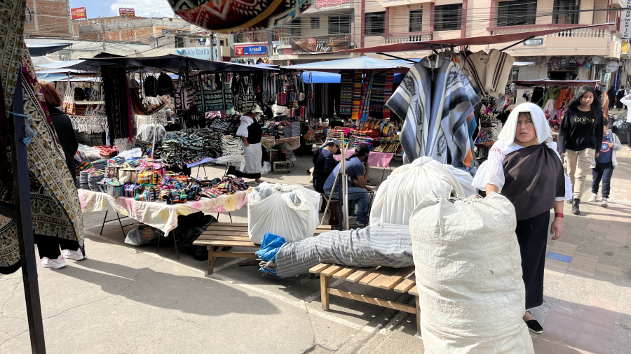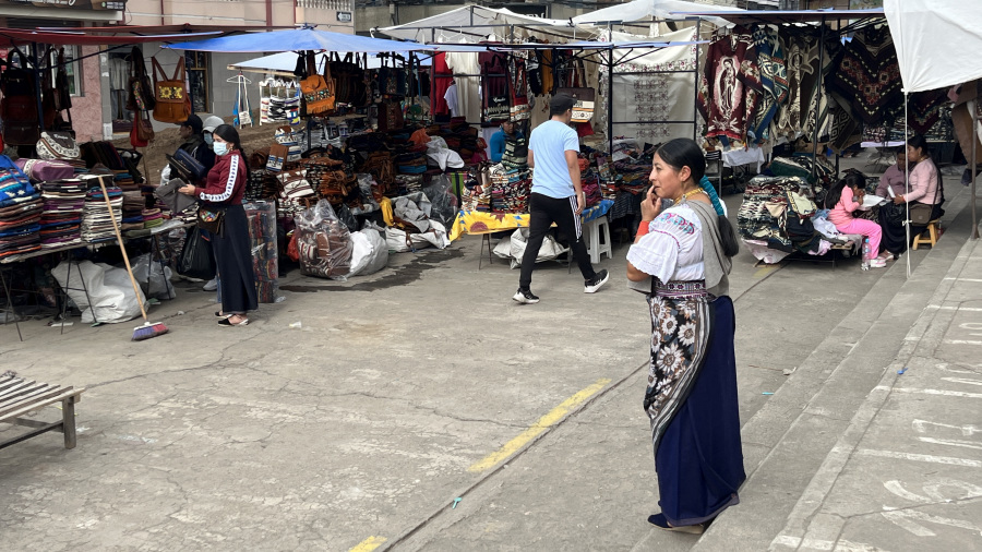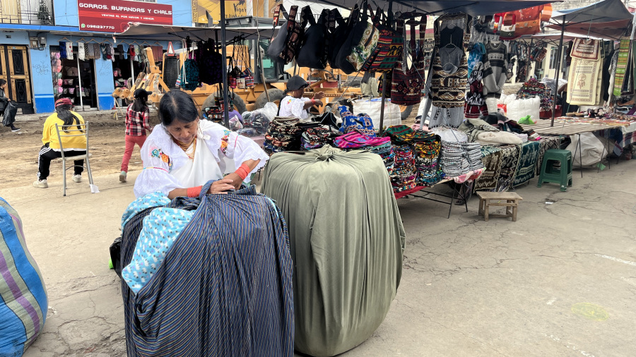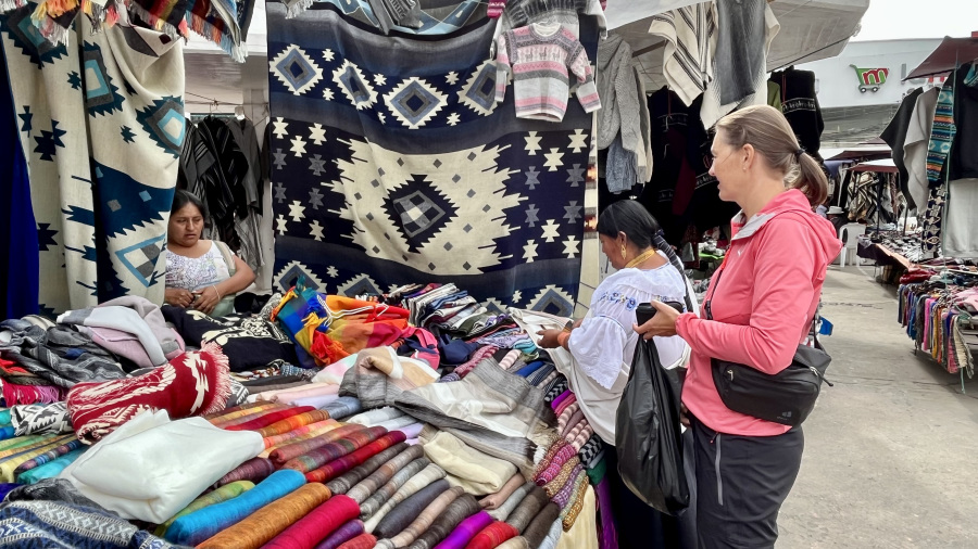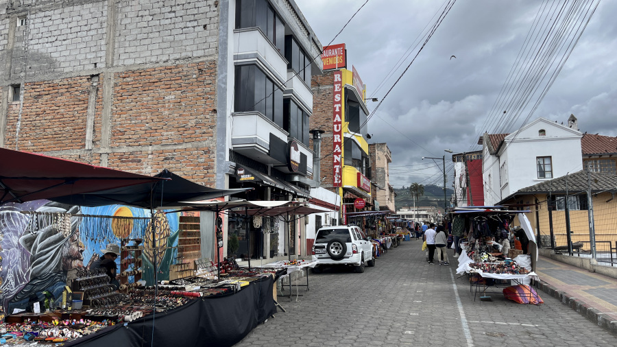 Odpeljala sva se nazaj v Otavalo, kjer sva tudi prenočila. Še preden sva se nastanila, pa sva se sprehodila po znameniti tržnici v Otavalu, kjer domačini pridejo z oddaljenih vasi s svojimi “ročno” izdelanimi izdelki. Tržnico in center so ravno prenavljali, zato so bile vse ceste razkopane. Ampak tržnica je vseeno delovala in domačini so lepo na stojnicah razprostrli izdelke svojih ročnih spretnosti. Nekateri so že tudi pospravljali, saj je bilo že popoldne in do teme morajo priti do svojih domov. Prevladuje seveda tekstil iz volne, po kateri so zelo znani. Tudi jaz sem si kupila lep pulover in šal, ki me bosta pozimi grela. Našla sva tudi dobre sendviče za kosilo, saj kaj drugega bolj domačega ali okusnega žal ni bilo na izbiro.