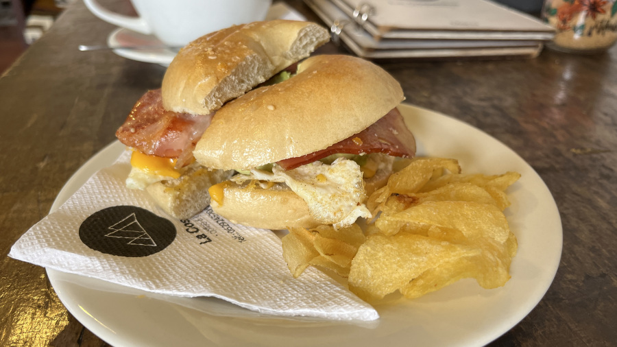 - kapučino, vroča čokolada, dva odlična sendviča = 10,50 USD (9,6 EUR)