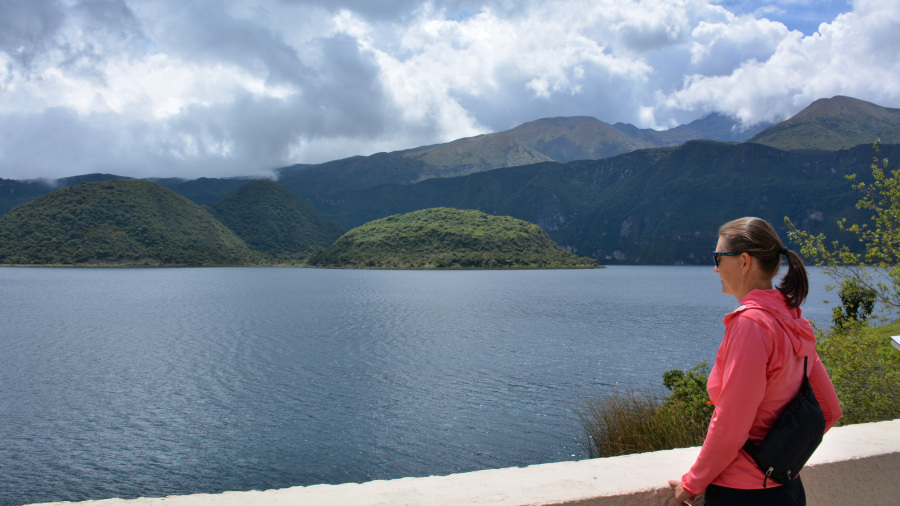 Hitreje sva nadaljevala do Otavala in še naprej do lagune Cuicocha. V domačem jeziku “jezero morskih prašičkov” je 3 km široka kaldera in kratersko jezero ob vznožju vulkana Cotacachi v Cordillera Occidental v ekvadorskih Andih. Ime je laguna dobila zaradi oblike morskega prašička največjega otoka sredi lagune. Kaldera je nastala z ogromnim izbruhom pred približno 3100 leti, ki je ustvaril približno 5 kubičnih kilometrov piroklastičnega toka in prekril okolico z vulkanskim pepelom do 20 cm globoko. Dejavnost se je nadaljevala do leta 650 našega štetja. V kombinaciji z drugimi izbruhi iz bližnjih Imbabure, Mojande, Cotacachija in Cayambeja je Cuicocha odgovoren za zelo rodovitno zemljo v dolini Otavalo. Rob kaldere je izjemno strm. Jezero, ki je na najgloblji točki globoko 200 m, je zelo alkalno in vsebuje malo življenja. Pri laguni sva naredila počitek v tamkašnji restavraciji, od koder sva imela lep razgled na laguni. Po laguni se lahko zapeljete tudi z manjšo ladjico, za kar se midva nisva odločila.