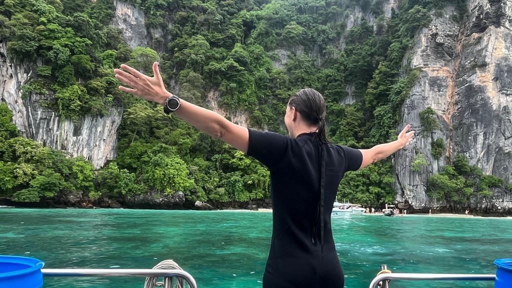 Še dva globoka in dolga potopa sem si privoščila na otoku Phi Phi. Res sem poizkušala ujeti vsak možen trenutek za potapljanje in tokrat smo šli že na jutranje potope ob 6:30. Jutranja potapljaška je kar huda, saj je odhod še pred zajtrkom s praznim želodcem. A zame so v hotelu poskrbeli in mi pripravili zajtrk za na pot. Sledila sta dva krasna, dolga in globoka potopa. Vrnili smo se okoli 12h nazaj na Phi Phi, kar je bilo super, da sem lahko popoldne šla še na razgledno točno nad otokom. Kako zelo je bilo vroče in soparno! Razgled je zelo lep na oba zaliva otoka, a od zadnjega obiska leta 2011 je vse tako pozidano, da dobiš solze v oči. Tokrat je bila tudi plaža krasna, saj ni bilo oseke. Popoldne sem uživala na plaži in izkoristila dan do konca.