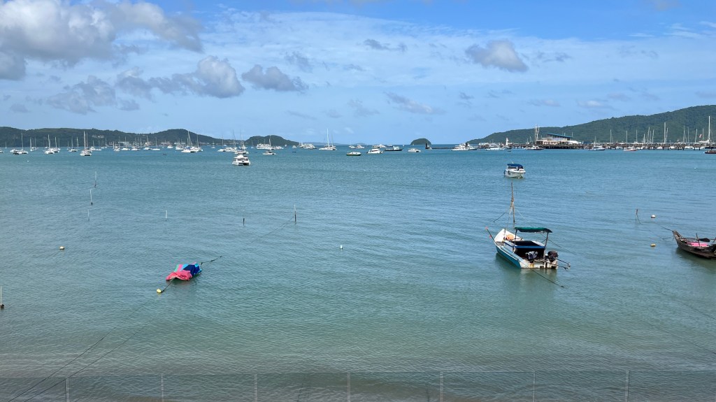 Ob treh sem imela hitri čoln na Phuket v pristanišče Rasadda, kar je pomenilo eno uro noro hitre vožnje po morju. Rasadda Pier je kar precej oddaljen od vsega dogajanja na Phuketu, zato sem od tam do svojega hotela vzela taksi. Žal ni bilo druge izbire. Phuket je res gosto naseljen in tudi z veliko prometa. Hotel sem si izbrala nekaj minut stran od pristanišča, od koder bom šla jutri na celodnevni izlet. To je bil moj glavni cilj na Phuketu. Hotel sem imela super lep, nov, moderen. Ogromna soba, pogled na morje, bazen na strehi in zelo mirna lokacija za spanje. Zvečer sem se sprehodila do potapljaškega centra Aussie Divers, da sem uredila vse potrebno za jutrišnji celodnevni potapljaški izlet s 3 dolgimi globokimi potopi.