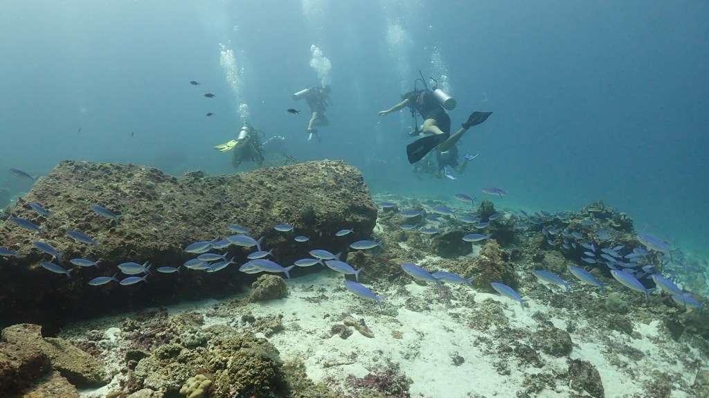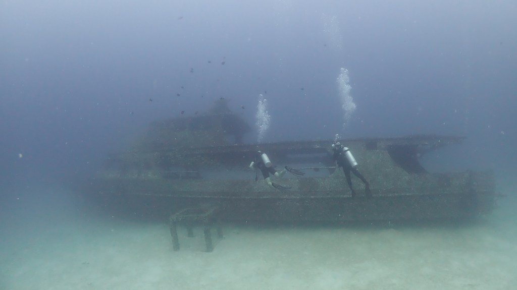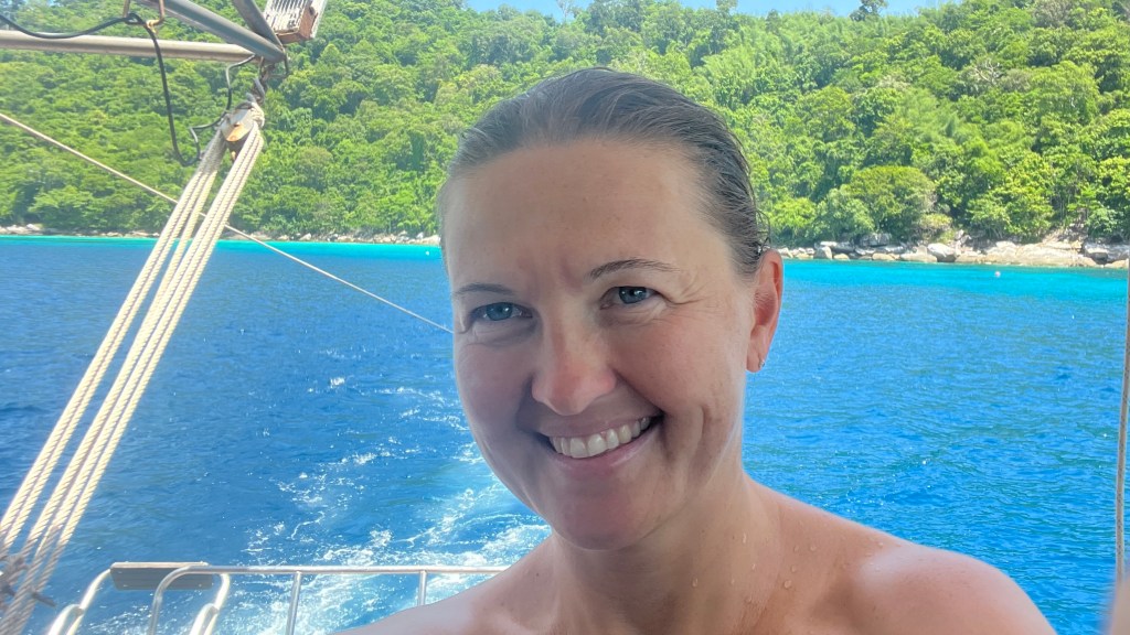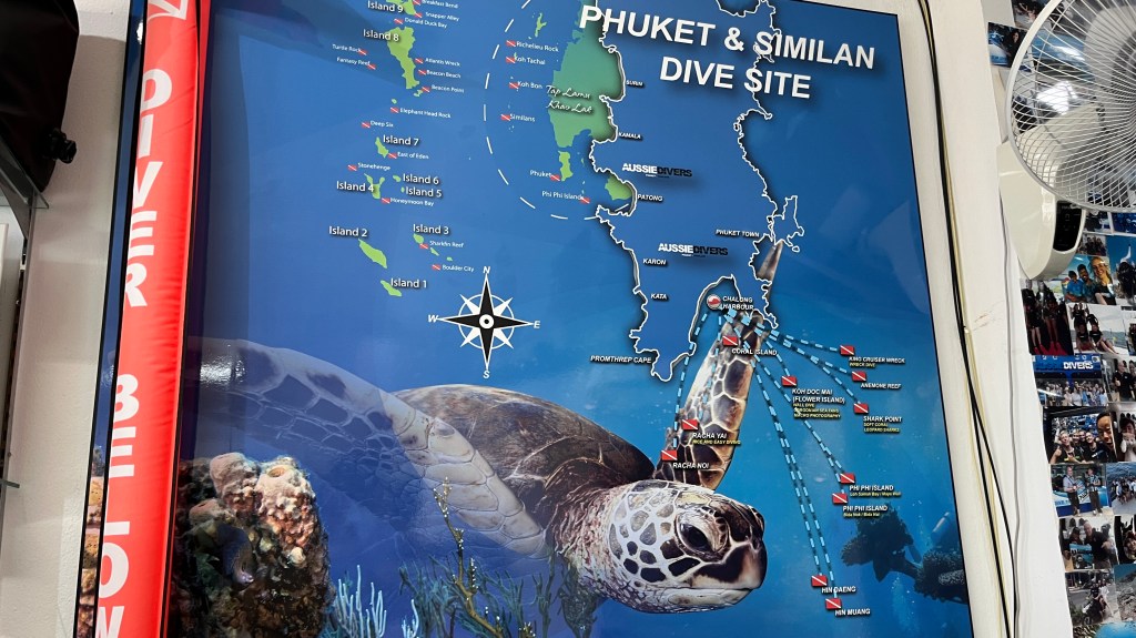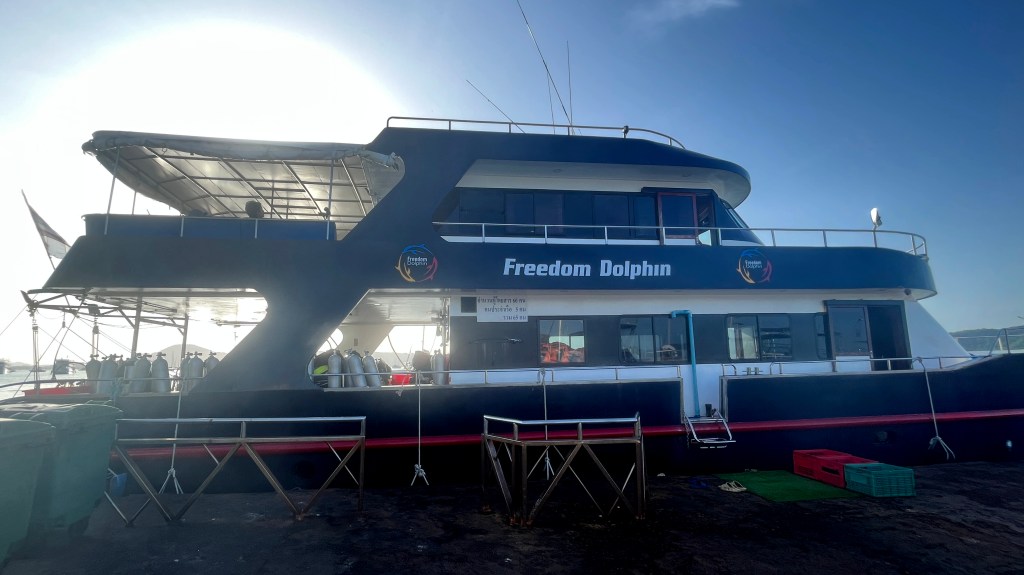 Še pred zajtrkom smo imeli zbor v potapljaškem centru Aussie Divers. Nato smo se kar peš odpravili do pristanišča ter se udobno namestili na veliki in zelo udobni potapljaški jahti. Zbrali smo se potapljači z različnih potapljaških centrov in bilo nas je približno 30. Na jahti je kar precejšnja gneča in vse mora potekati zelo gladko. Najprej jutranji “briefing” s sporedom in pravili, sledil je odličen zajtrk med vožnjo do otoka Racha Noi, nato pa prvi potop, sledila je malica, drugi potop, kosilo in še tretji potop. Praktično nimaš niti minute časa za uživanje, razen vožnje z ladjo na mesto potapljanja in nazaj. Morje je bilo kar valovito, a meni to ne predstavlja velikih težav. Prijetno sem se zaklepetala z drugimi potapljači in slabi dve uri vožnje sta hitro minili. Potopi so bili dolgi, globoki in prekrasni, tokrat je celo moj inštruktor fotografiral in imam nekaj posnetkov za spomin. Jaz sem samo neizmerno uživala v svojih zadnjih potopih na tokratnem potovanju po Tajski. Krasen zaključen potovanja!