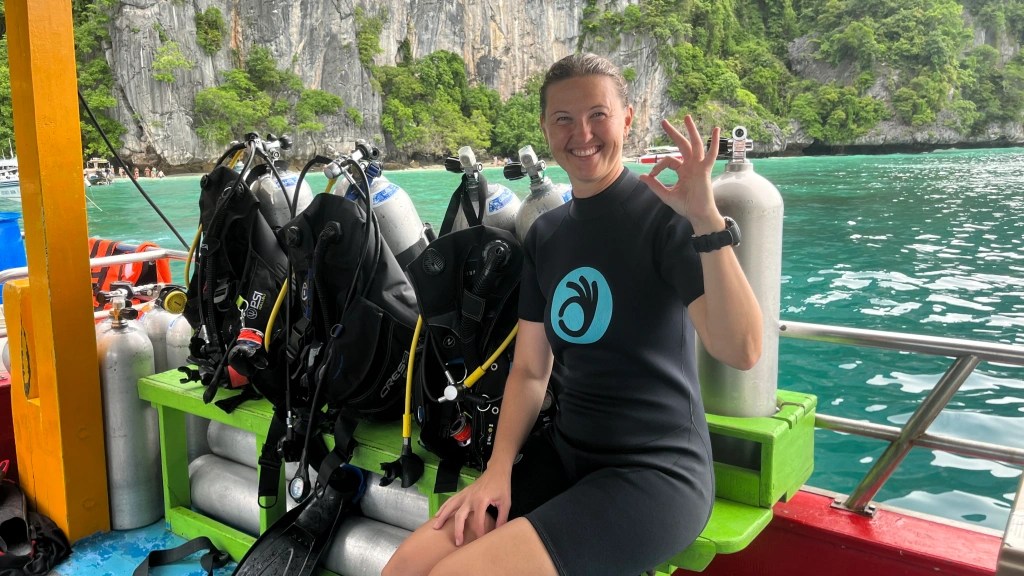 Samostojno potovanje na Tajsko sem izvedla zelo nepričakovano in na hitro. Doma sem bila le en dan po potovanju v Ekvador in na otočje Galapagos. Izkoristila sem prosti čas za 15-dnevno potovanje na Tajsko in sicer izključno za potapljanje. Naredila sem nadaljevalni tečaj potapljanja (PADI AOW) in kar 14 globokih in dolgih potopov. V potapljanju sem začela res uživati in to je bil glavni namen potovanja. Nabiranje podvodnih izkušenj in seveda novih doživetij pod vodno gladino. Obiskala sem destinacije, kjer sem že bila sama leta 2011 in sicer otoka Koh Tao in Koh Phi Phi ter za konec Phuket. Uspelo mi je vse po načrtu in potovanje je res bilo nepozabno.