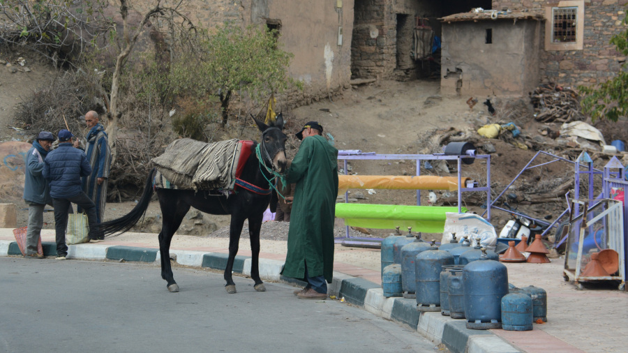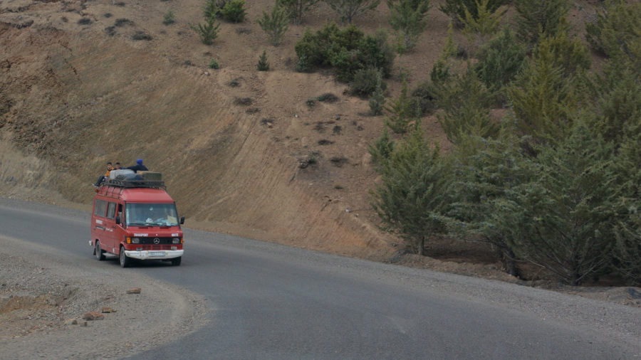 Že takoj po res okusnem domačem zajtrku sva se odpravila na dolgo pot čez Visoki Atlas. Zelo hitro sva se začela vzpenjati, vozila po visokih planotah, zavitih cestah, majhnih vaseh in opazovala tradicionalno življenje domačinov. Tukaj ni veliko dogajanja. Tudi oljčni nasadi so povsem izginili. Oslički, tu in tam kakšna manjša njiva, predvsem pa prodaja in kupovanje plina v modrih jeklenkah. Bližala se je zima in sneg ter s tem tudi izjemno nizke temperature. Razgledi so bili vseskozi fenomenalni na celi poti. Uživala sva prav vsak kilometer prevožene poti in bila res vesela tega doživetja. Tudi cesta je izjemno lepa, še najslabši del poti je praktično bil zadnji del, ko sva se že spuščala nazaj s planote proti ravnini. Tam sva tudi zagledala največjo sončno elektrarno na svetu, katere stolp se je lesketal v sončnih žarkih že z velike razdalje.