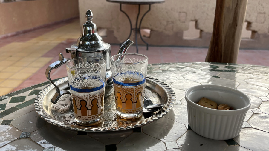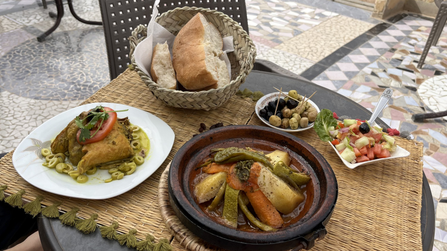 - kosilo (kava, čaj, 2x tajine) = 150 MAD (14,3 EUR)