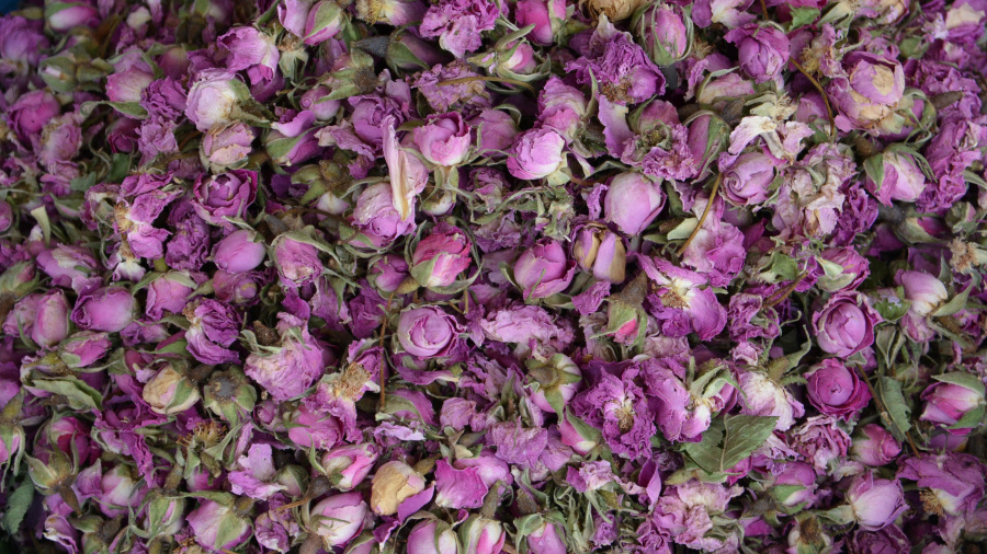 Ravno obratno pa je bilo v naslednjem mestu Kaalat M’Gouna, od katerega čisto nič nisva pričakovala, pa je bilo izjemno lepo mesto, polno trgovin, kavarn, restavracij in zelo urejeno glavno cesto. Tukaj je namreč zelo blizu znamenita dolina divjih vrtnic, ki cvetejo spomladi. Maročani pa spretno poberejo potem vse cvetove, jih posušijo in iz njih izdelujejo olje ter vse ostale izdelke. Glavna ulica se bohoti v izdelkih iz divjih vrtnic. Še taksiji so roza barve.