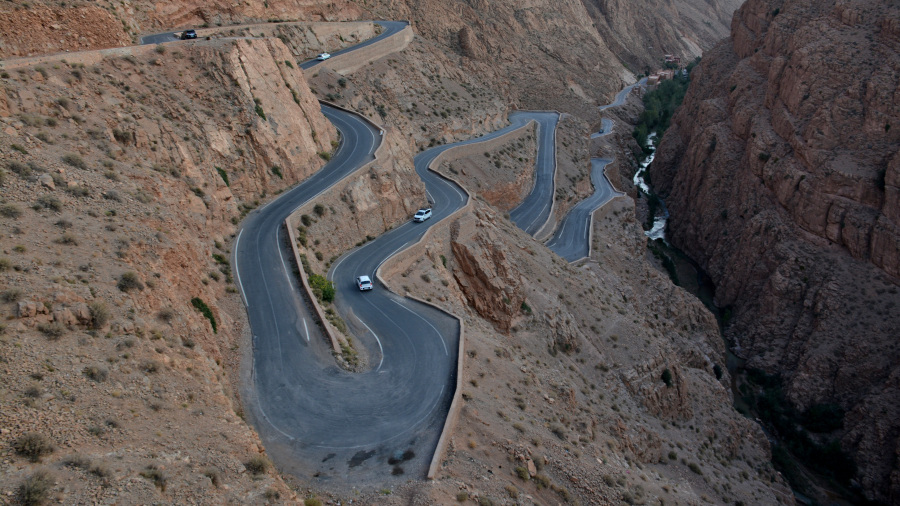 Precej dolg dan je bil pred nama poln novih doživetij in seveda tudi pričakovanj. Takoj po zelo okusnem zajtrku sva sedla v najin najeti avtomobil ter se zapeljala čez hribe in doline Visokega Atlasa. Odročno in skromno življenje v hribovitem in pozimi zelo mrzlem Maroku je zagotovo tudi za domačine izziv. Vijugasta cesta se vije zelo visoko in praktično celo pot nisva srečala prav veliko vozil. Po dolgi vožnji sva prispela na ravnico in si ogledala lepo ohranjeno tradicionalno kasbo Amridil. Kosilo sva si privoščila v eni redkih restavracij ob cesti ter se sprehodila po vasi Kaalat M’Gouna, ki je znana po izdelkih cvetov divjih vrtnic. Popoldne sva prispela v sotesko Dades, ki je izjemno lepa. Bujne zelene oaze in čudovite dateljeve palme polepšajo hribovito okolico.