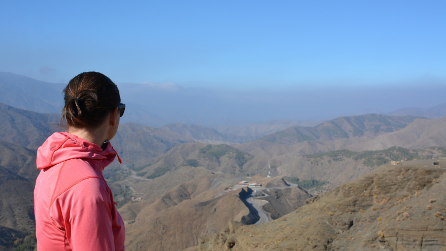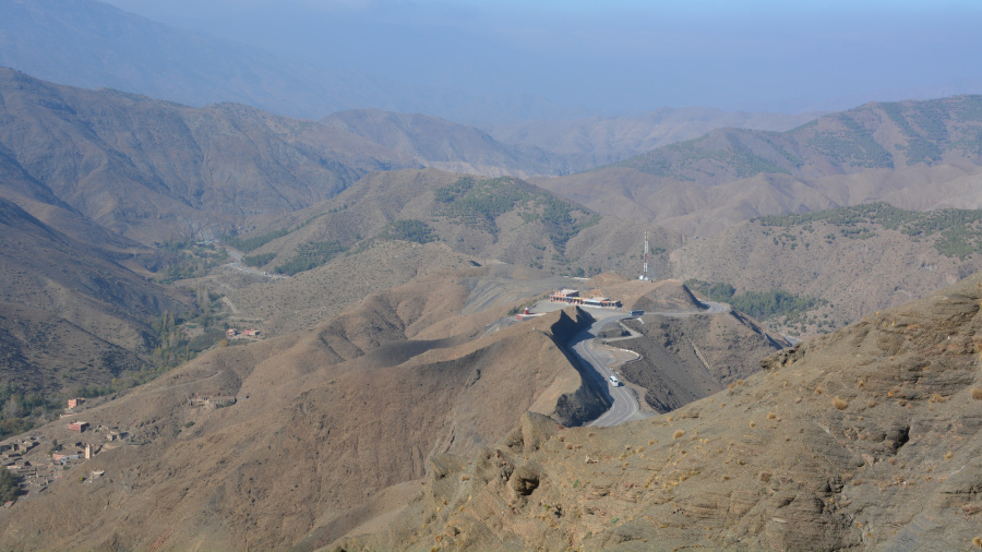 Po vročem in soparnem ogledu ksarja sva rabila malce počitka in sva si privoščila kosilo. Žal pico, ki je mi naredila kar nekaj trebušnih težav v naslednjih dneh. Sledila je dolgo pričakovana vožnja po znamenitem prelazu Tizi n’Tichka čez Atlas. Res hudo dober prelaz z veliko zavoji in lepimi razgledi. Najvišje se povzpnemo kar na 2.260 metrov, kjer je bilo kar precej mrzlo in pihal je močan veter.