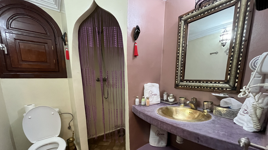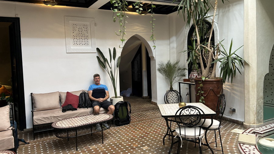 Izbrala sem popolno nastanitev v Marakešu. Tradicionalni riad z prečudovito arhitekturo, bazenom, osrednjim vrtom in krasno sobo. Res je bilo vse kot v pravi maroški pravljici. Že dolgo sva se spogledovala z novim doživetjem – tradicionalnim hamamom, a nama čas nikoli ni dopuščal. Tukaj se je vse poklopilo. Imeli so tradicionalni hamam v riadu. Bila sva lahko tudi skupaj. Gre za kombinacijo turške parne savne in res zelo grobega pilinga, ki nama ga je naredila gospodična. Uf, res naju je ogulila do kosti in potem tudi seveda nežno umila in spirala. Ko je mene drgnila, se je še Matjaž smejal, ko sem se jaz skoraj jokala od bolečine, kasneje tudi njemu ni bilo več smešno. A koža je bila izjemno gladka in res sva bila po hamamu kot nova. Jaz sem si privoščila po hamamu še masažo in bila sem kot prerojena. Super izkušnja.