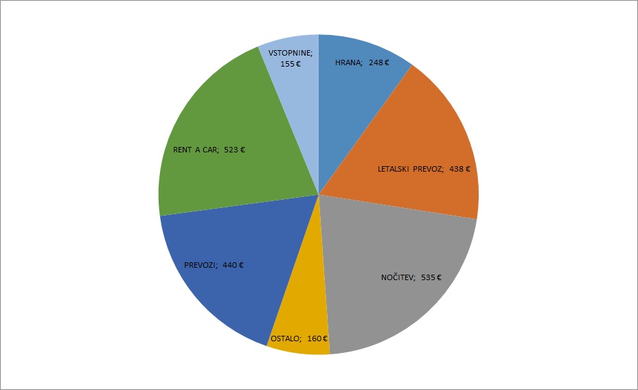 Na celotnem 10-dnevnem potovanju sva zapravila 2.497 EUR oziroma 1.249 EUR/osebo, od tega za 2 OSEBI: